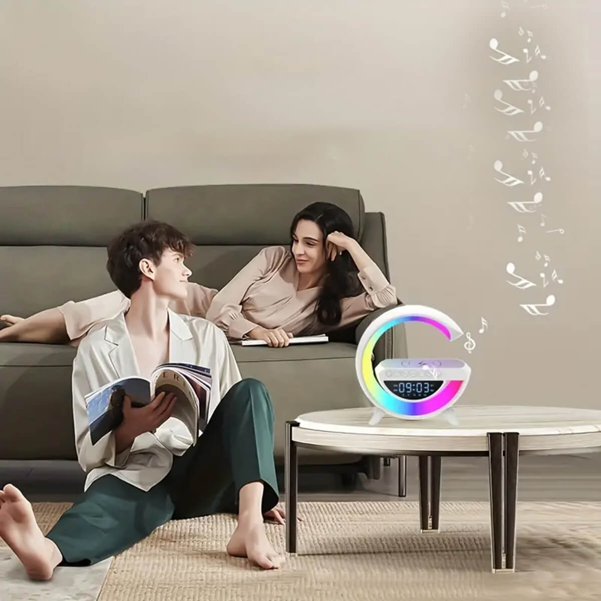 Belaidis įkroviklis, laikrodis, radijas ir žadintuvas. Tiek daug funkcijų viename, taip pat LED apšvietimas ir galimybė naudoti gaminį kaip klasikinį „Bluetooth“ garsiakalbį. Jau nekalbant apie muzikinius skambėjimo tonus, atpalaiduojančias melodijas ir 7 foninio apšvietimo spalvas.