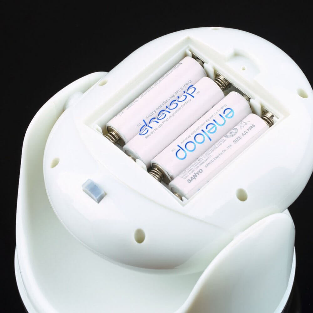Maitinamas 4 × AA baterijomis, tad nereikia jungti prie elektros tinklo. Montavimas itin paprastas ir neinvazinis – šviestuvas tvirtinamas dvipuse lipnia juosta korpuso gale.