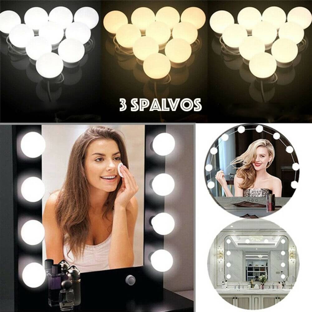 - 10 LED lempučių tolygesniam veidrodžio apšvietimui