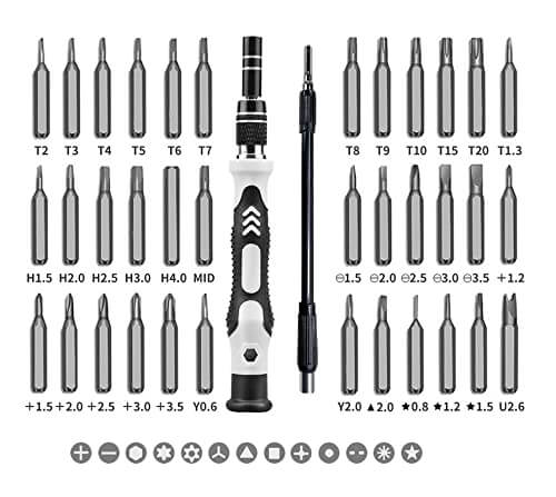 - Komplekte yra ergonomiškas atsuktuvas, 42 keičiamų antgalių ir kiti priedai.