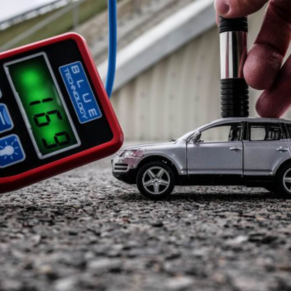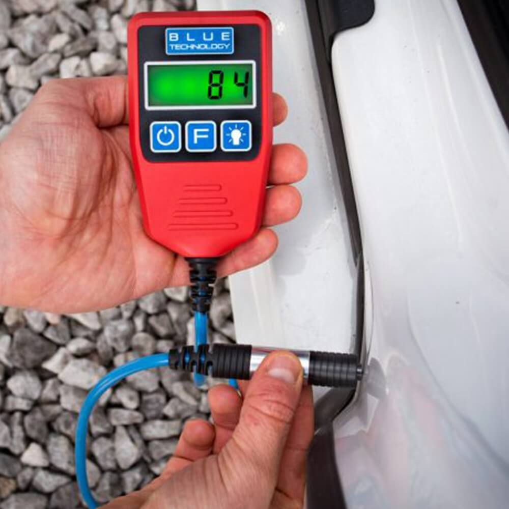 Rankinis dažų storio matuoklis, skirtas matuoti automobilio kėbulo dažų storį. Atlieka matavimus ant plieno, cinkuoto plieno ir aliuminio paviršių. Išsiskiria itin plačiu matavimo diapazonu (0 ~ 5000 μm) ir dideliu tikslumu. Specialus matuoklio zondas pritvirtintas prie prietaiso 60 cm ilgio laidu ir leidžia patogiai atlikti matavimus ant įgaubtų ir išgaubtų paviršių, net ir sunkiau pasiekiamose vietose.