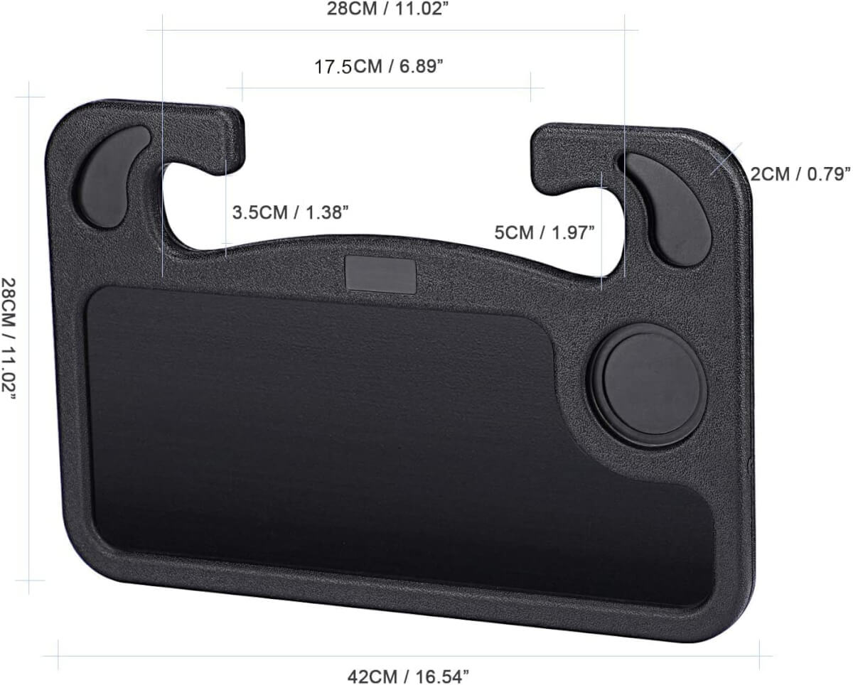 - Mūsų automobilinis kelioninis padėklas tinka daugumos transporto priemonių vairams.
