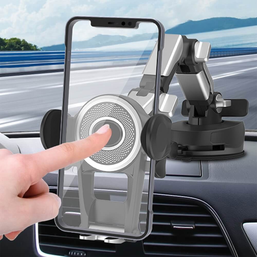 Universalus automobilinis laikiklis telefonams. Gali būti tvirtinamas prie stiklo arba prie kito lygaus paviršiaus.