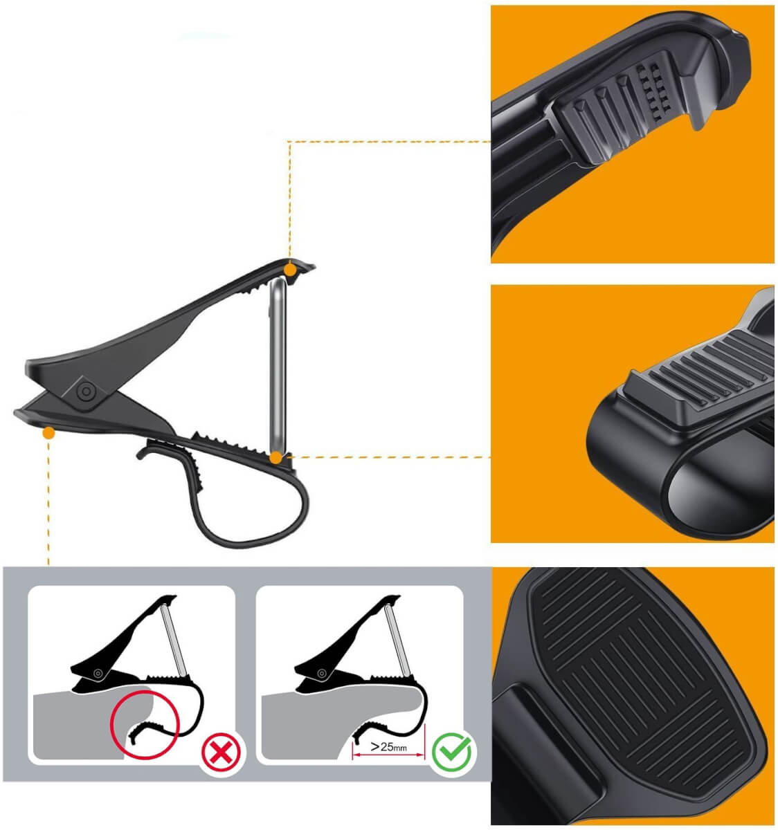 - Dvigubai lenktas pagrindo dizainas – tvirtesnis laikymas ir geresnis prigludimas prie prietaisų skydelio