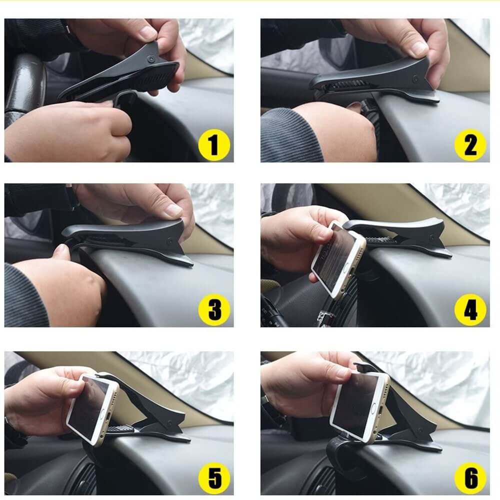 Stilingas ir praktiškas telefono laikiklis, sukurtas patogiam naudojimui automobilyje. Dvigubai lenktas pagrindas (vertikaliai ir horizontaliai) padeda tvirtai laikyti telefoną ir gerai priglunda prie prietaisų skydelio formos. Laikiklis išlaiko ekraną patogioje matymo linijoje, todėl telefoną lengva valdyti viena ranka.