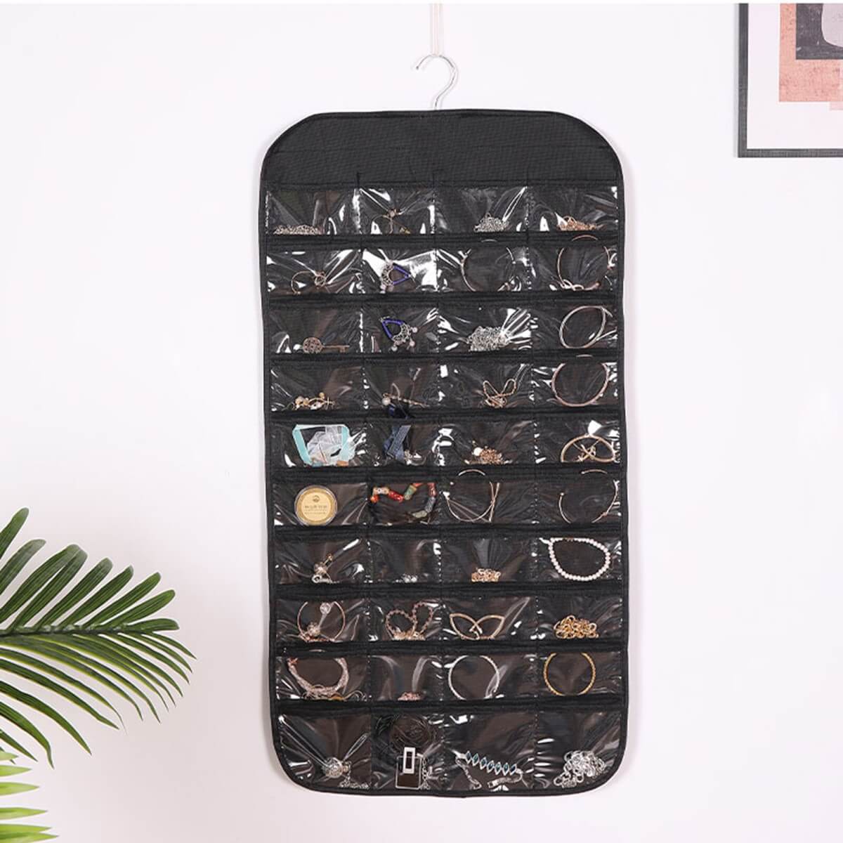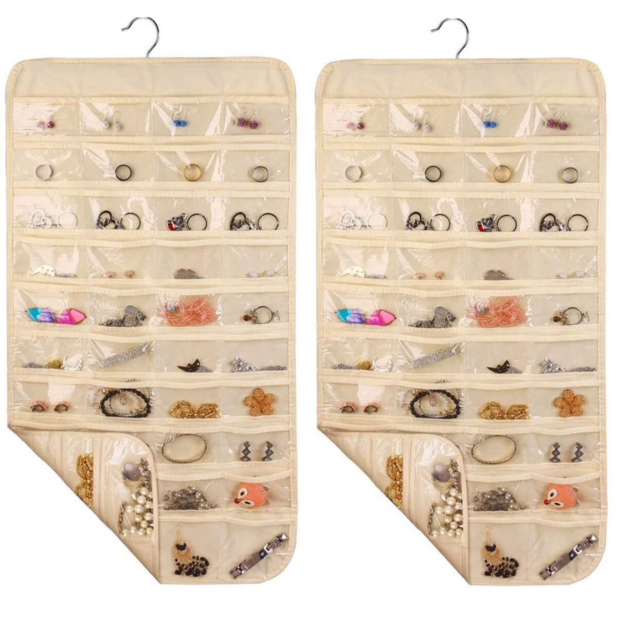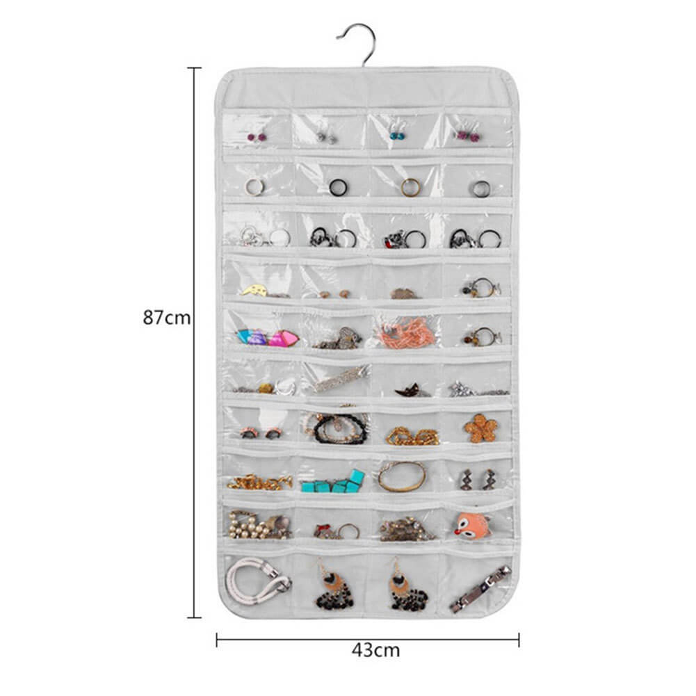 Dvipusis pakabinamas laikymo krepšys su 80 permatomų kišenių plaukų segtams / apyrankėms / asmens tapatybės kortelei / karoliai