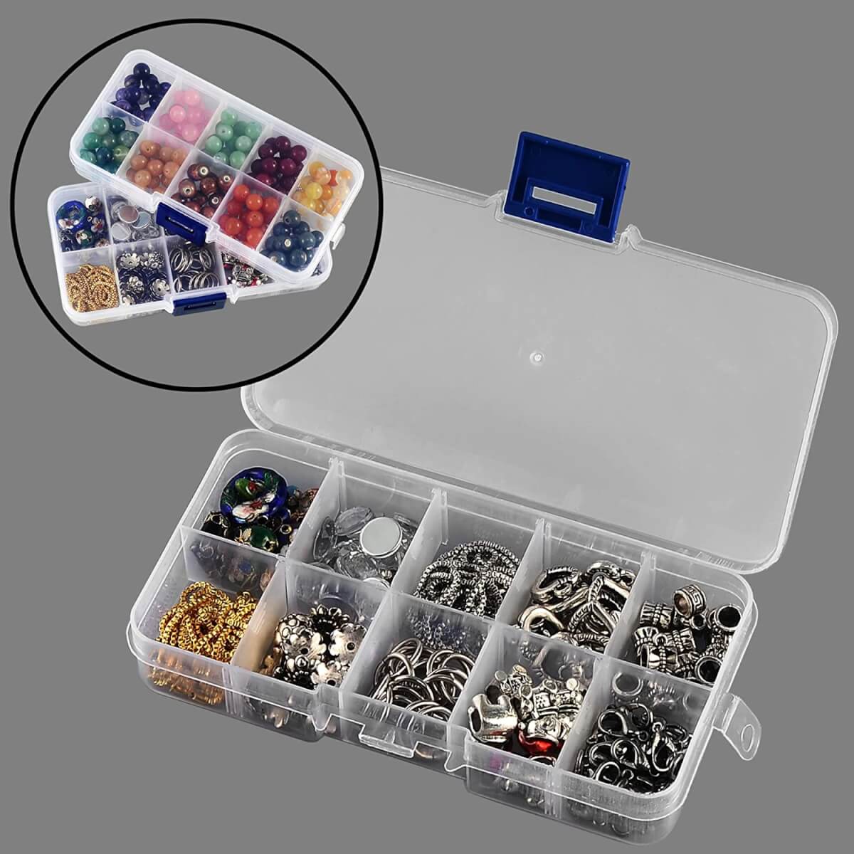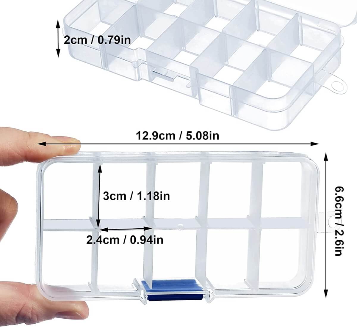 Plastikinė dėžutė, 10 skyrelių