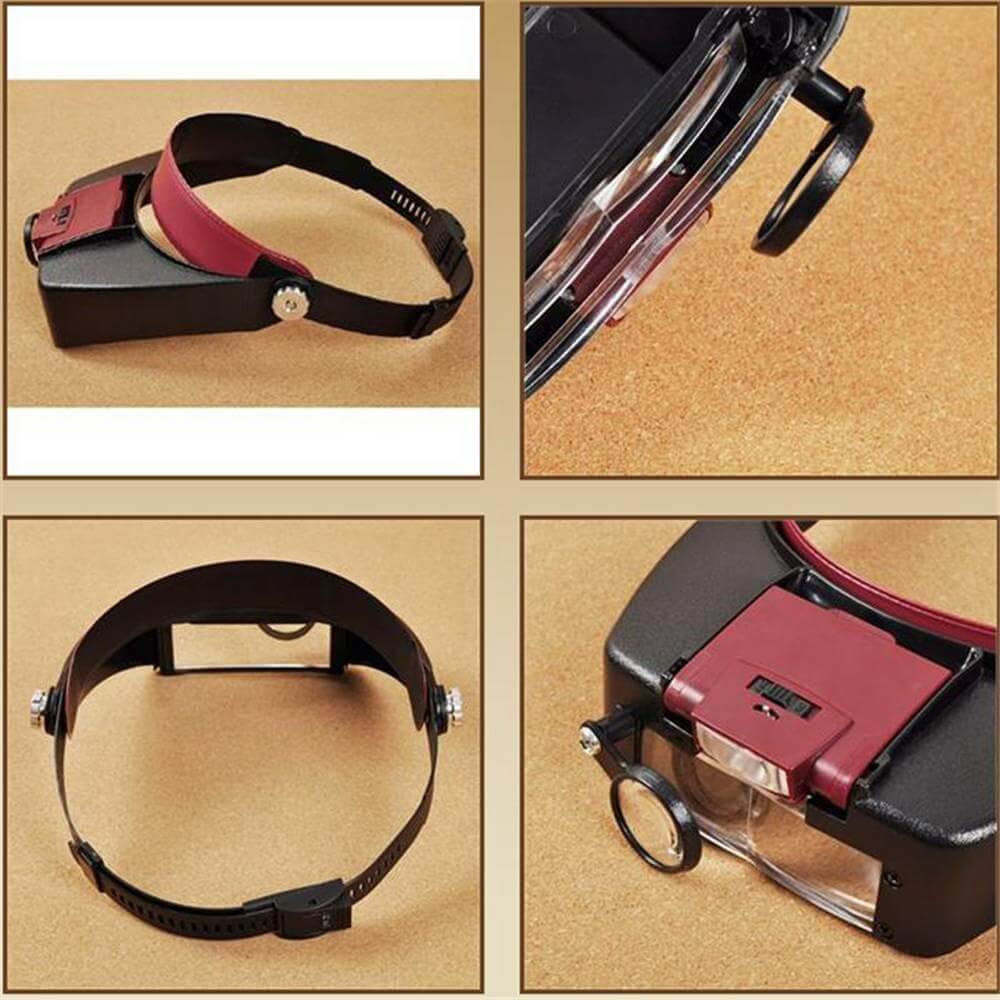 Didinamieji akiniai su LED apšvietimu (1,5x–10x) – patogus sprendimas kruopštiems darbams, kai svarbus tikslumas ir norisi dirbti laisvomis rankomis. Keičiamų lęšių rinkinys leidžia greitai pasirinkti tinkamiausią didinimą, o 2 reguliuojamos LED lemputės ryškiai apšviečia darbo zoną tiek dieną, tiek prastesniame apšvietime.