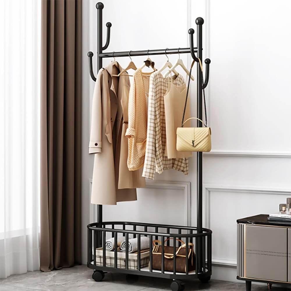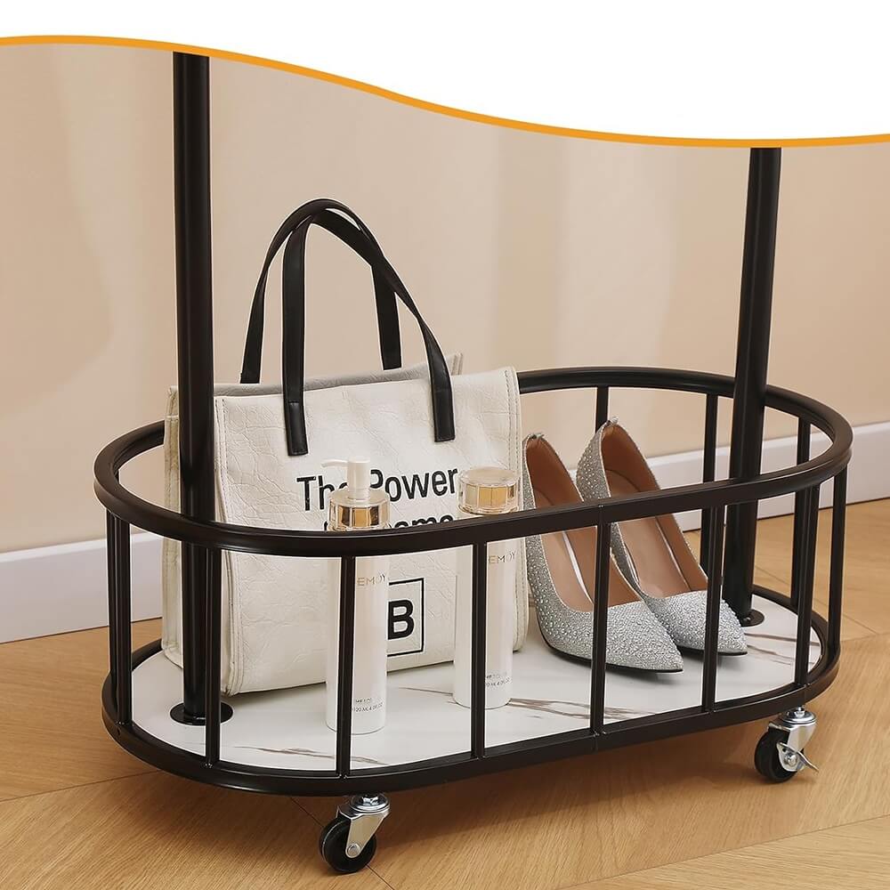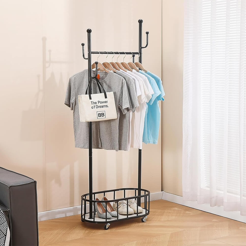 Drabužių kabykla su ratukais ir lentyna (80x40x170 cm)