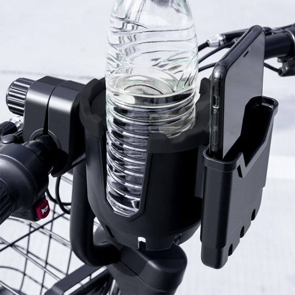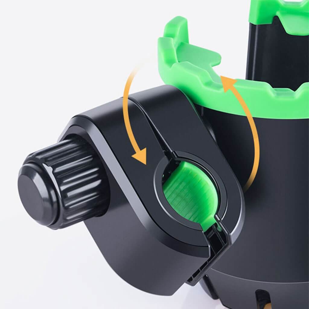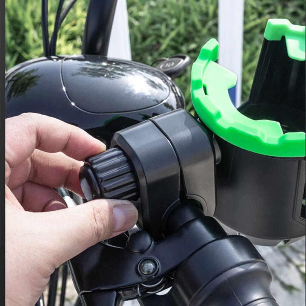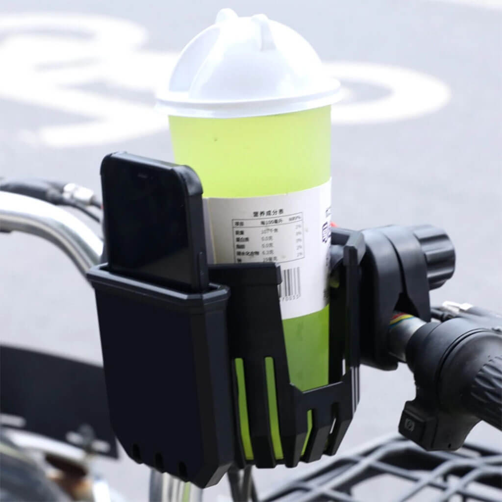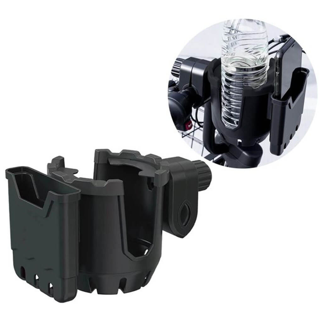 Praktiškas universalus laikiklis, tvirtinamas prie dviračio, motociklo, motorolerio, elektrinio paspirtuko ar net vežimėlio vairo. Vienu metu patogiai laikysite telefoną ir gėrimą – nuo gertuvės iki kavos puodelio. Guminės juostos sugeria vibraciją ir prisitaiko prie įvairaus dydžio taros, o 360° reguliavimas leidžia nustatyti patogiausią kampą.