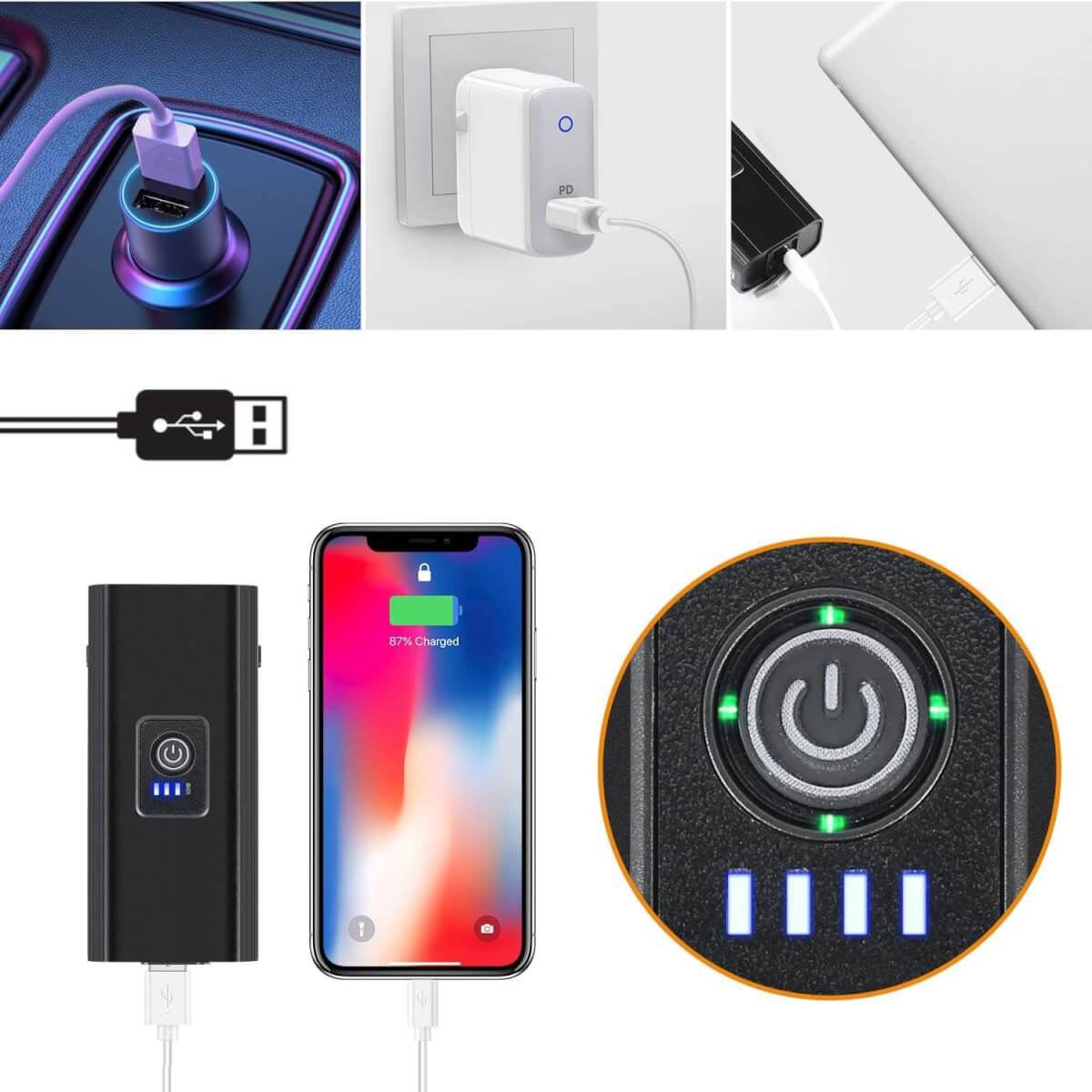 - „Powerbank“ išvestis: USB-A 5V / 1A