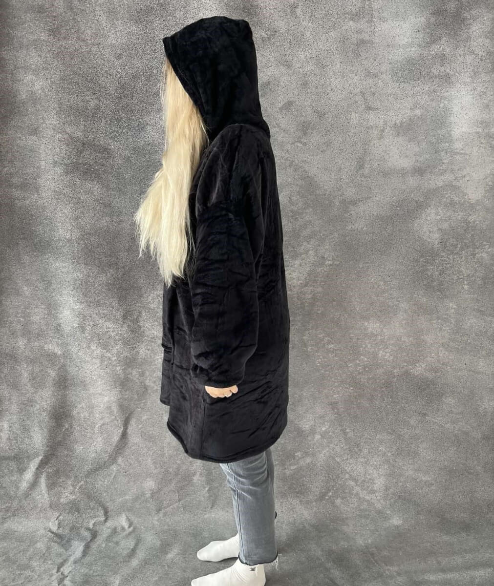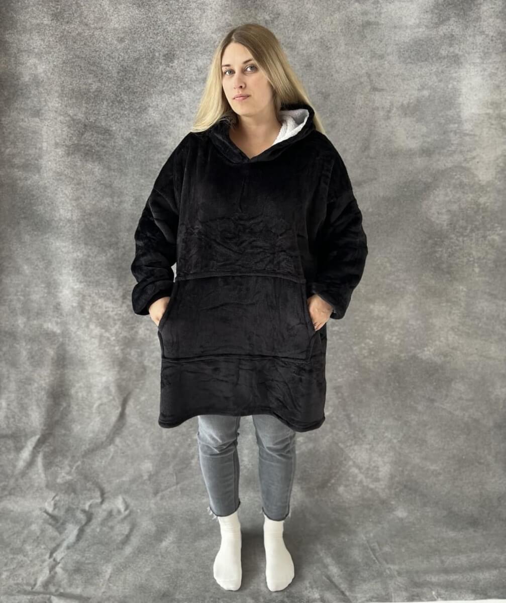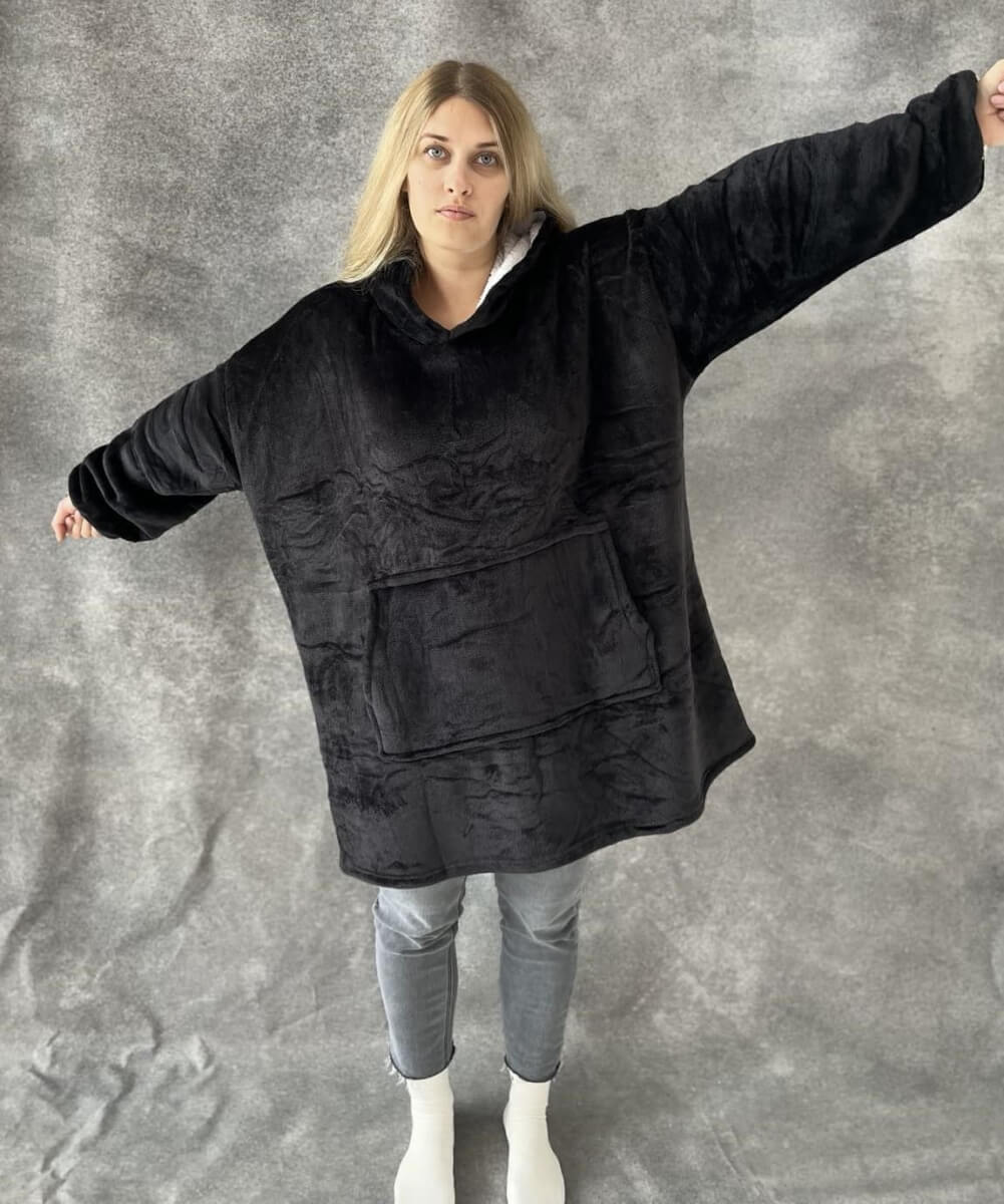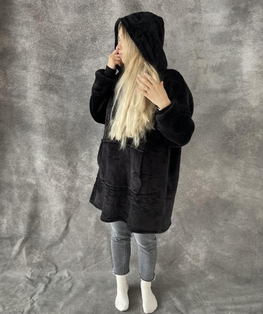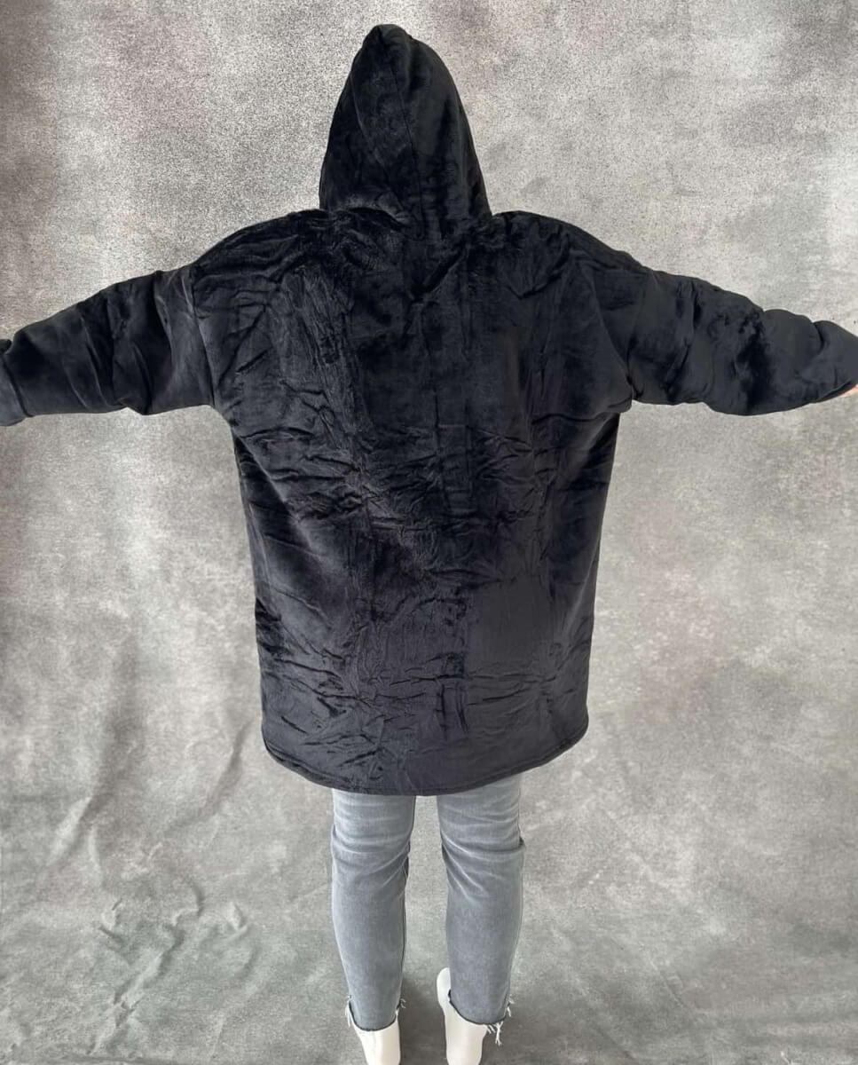 • Atstoja džemperį ir pledą viename – ideali apranga jaukiam poilsiui.