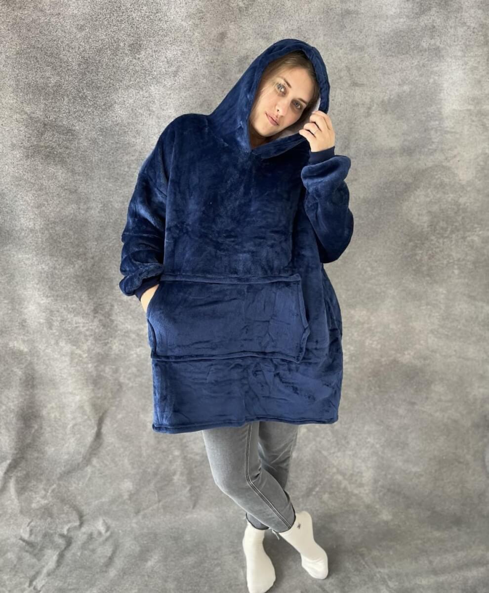 • Atstoja džemperį ir pledą viename – ideali apranga jaukiam poilsiui.