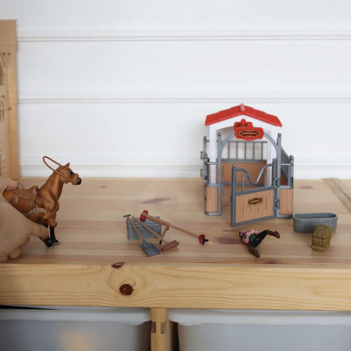 Leiskite vaikui pasinerti į kaimo gyvenimo nuotykius su WOOPIE prekės ženklo Stable rinkiniu. Klasikinės išvaizdos, tiksliai atkurta arklidė ir patvarūs priedai įkvepia vaidmenų žaidimams, lavina vaizduotę ir kūrybiškumą, o rūpinimasis žirgais padeda ugdyti ekologinį sąmoningumą.