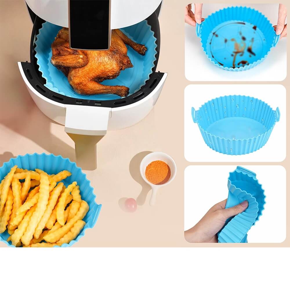 - Pagamintos iš aukštos kokybės silikono, šios formos yra tvirtos, lanksčios ir ilgaamžės, skirtos patogiam naudojimui karšto oro gruzdintuvėse.