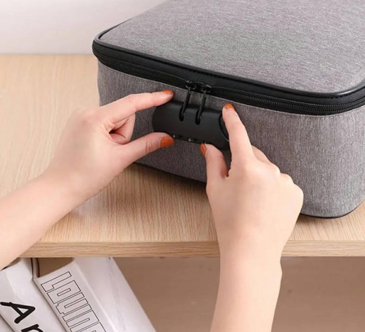 • Užsegamas užtrauktuku, todėl viduje esantys daiktai saugiai laikosi.