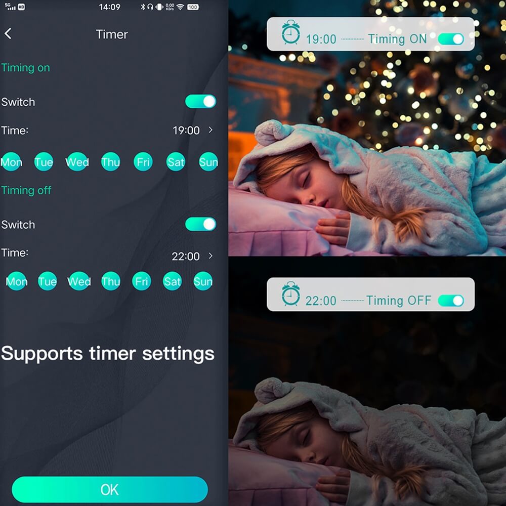 - Girliandą galėsite valdyti per išmaniąją programėlę.