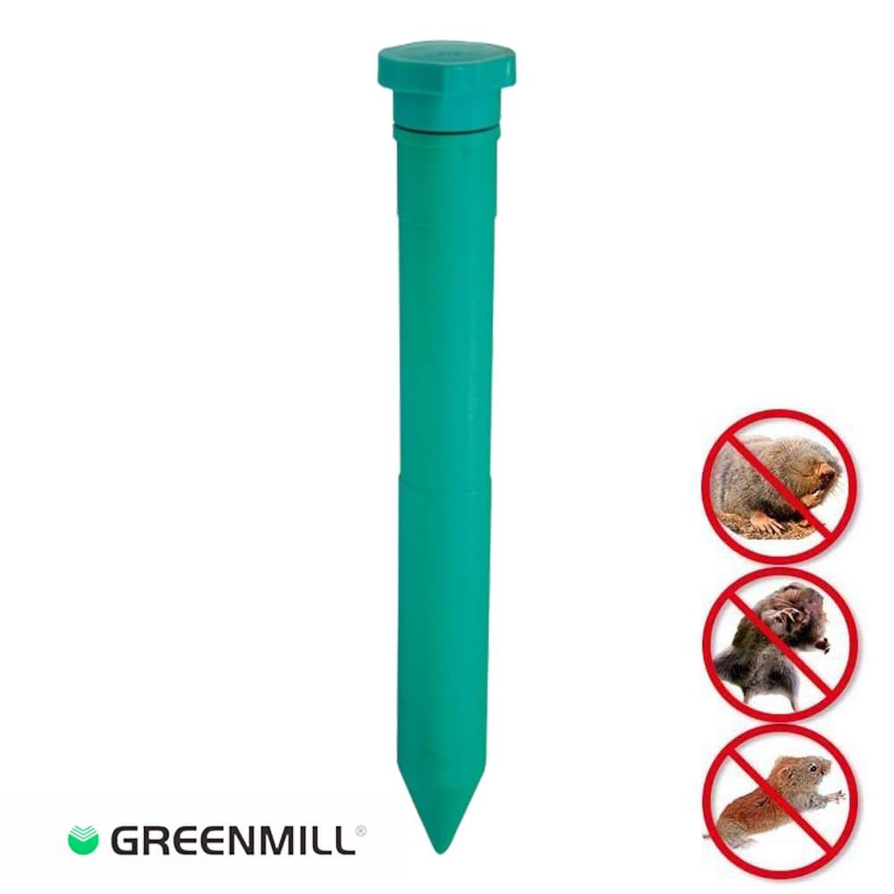 Apsaugokite veją ir gėlynus nuo kurmių be chemikalų ar spąstų. Ultragarsinis Greenmill repelentas skleidžia žemo dažnio garsus, kurie kurmiams sukelia diskomfortą ir padeda juos atbaidyti, tačiau yra saugus žmonėms ir naminiams gyvūnams. Tinka naudoti lauke ištisus metus – patikimas ir aplinkai draugiškas sprendimas jūsų sodui.