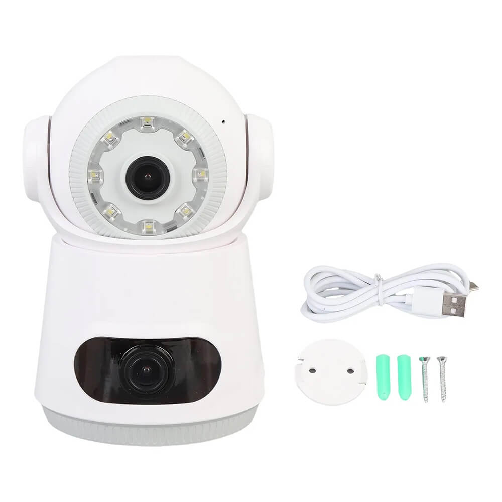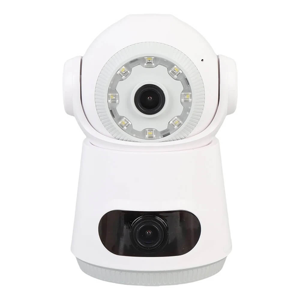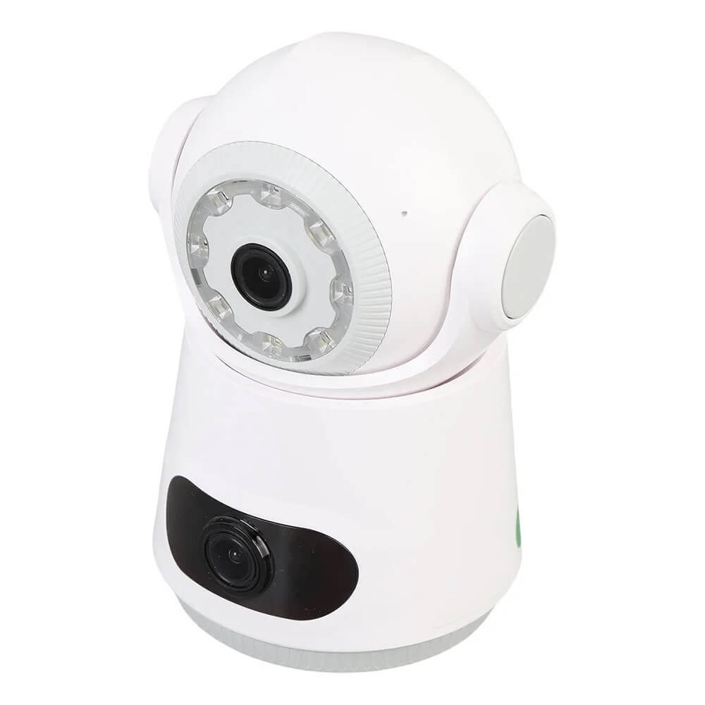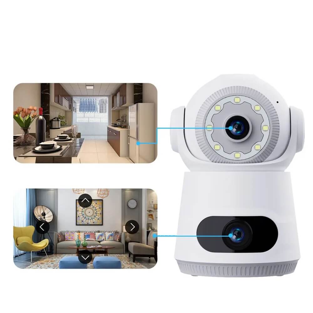 - Dviguba kamera ir dvigubas vaizdas: Įrenginys turi du objektyvus, leidžiančius vienu metu stebėti du skirtingus kampus – 360° be aklųjų zonų!