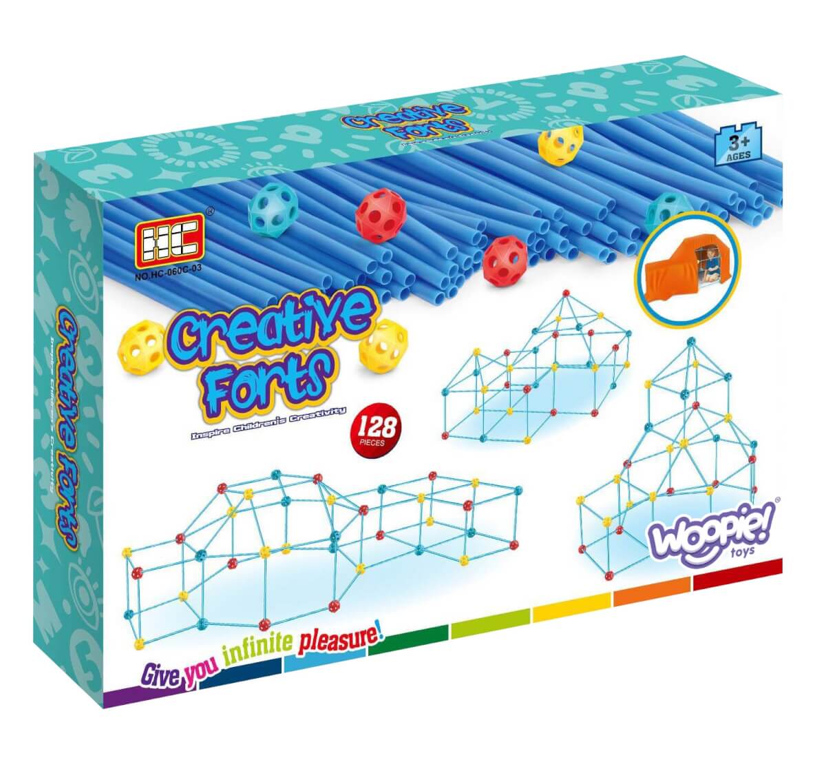 Pažadinkite mažąjį inžinierių su WOOPIE statybiniu rinkiniu! 128 dalių rinkinys leidžia lengvai sujungti elementus į erdvinę konstrukciją, pavyzdžiui, palapinę, ir ją uždengti specialia medžiaga. Puikiai tinka kūrybiškoms pramogoms tiek namuose, tiek lauke – lavina vaiko kūrybiškumą, erdvinį mąstymą ir smulkiąją motoriką.