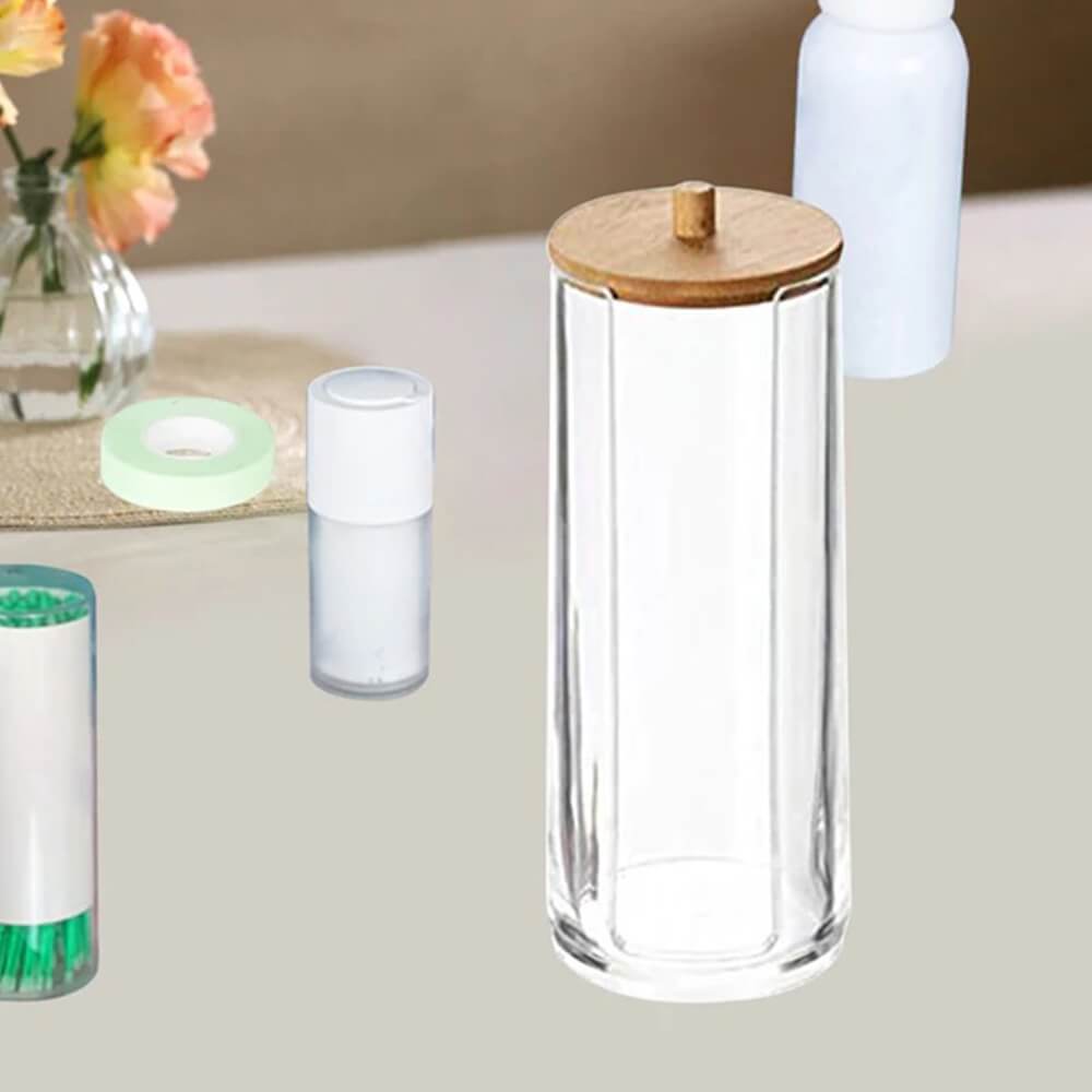 Elegantiškas ir itin praktiškas indas medvilninėms pagalvėlėms ir makiažo valymo servetėlėms. Nepamainomas kiekviename vonios kambaryje ir tualetiniame staliuke. Pagaminta iš patvaraus, skaidraus plastiko.