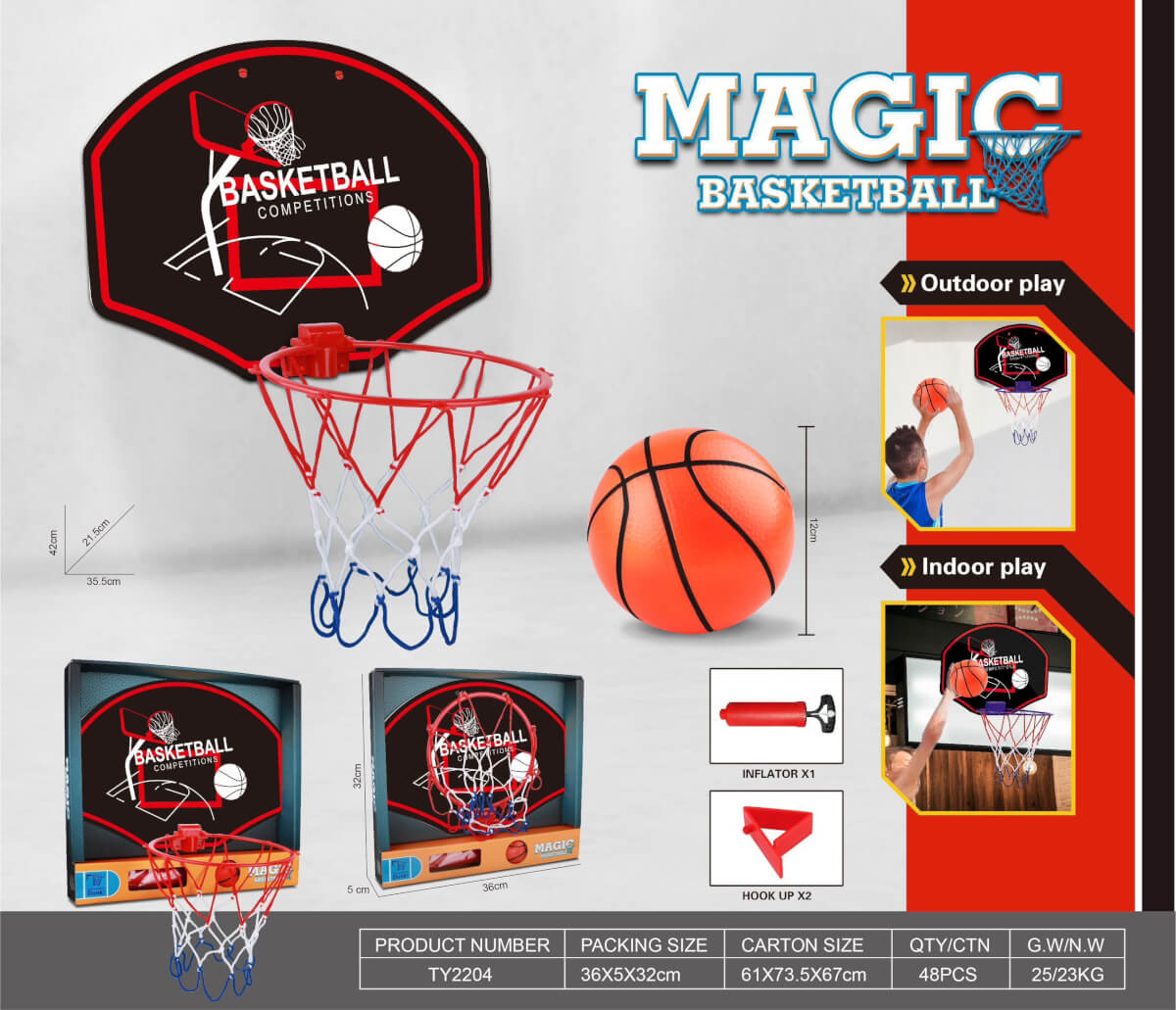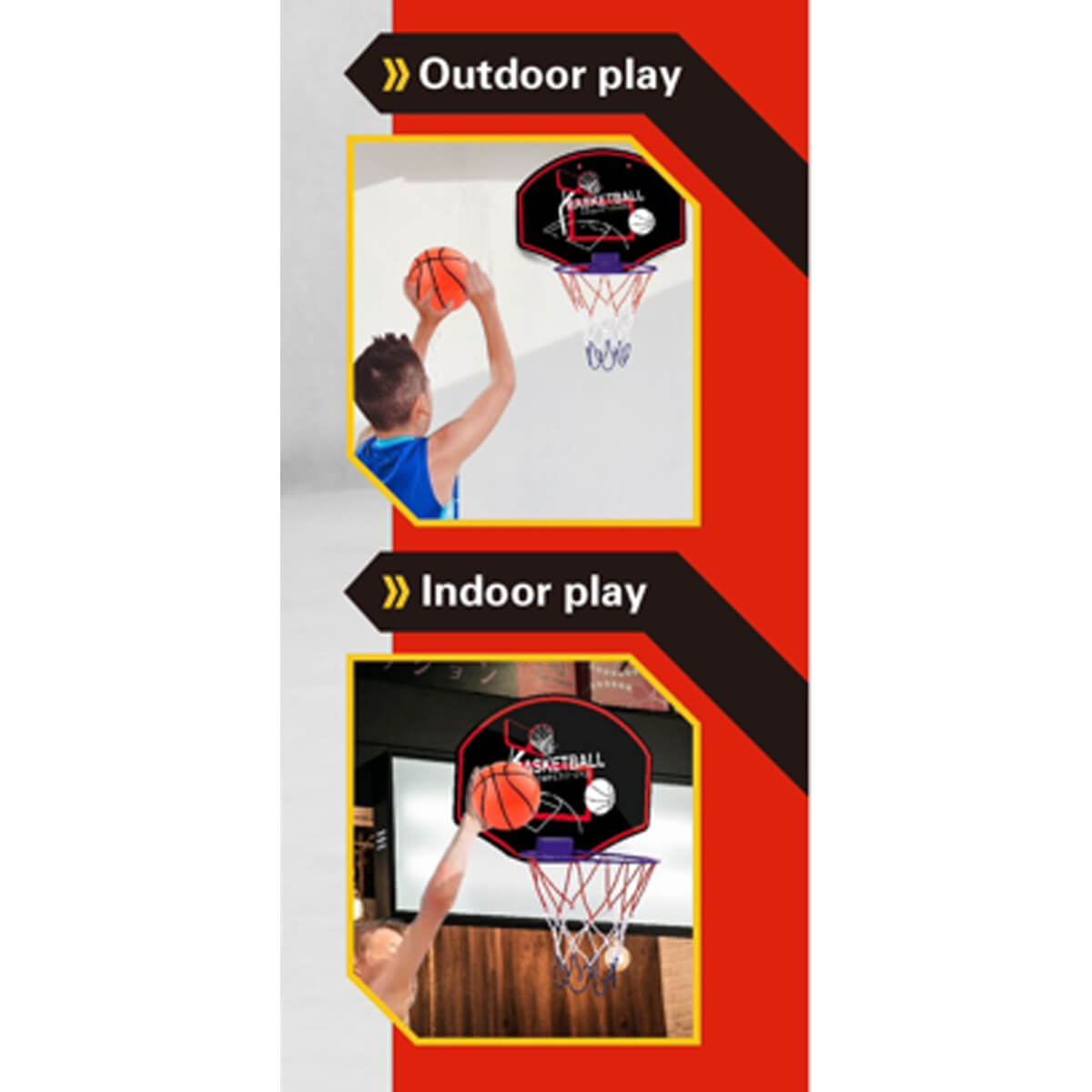 Supažindinkite savo vaiką su krepšiniu neišnaudojant daug vietos. WOOPIE krepšinio rinkinys lengvai surenkamas, patvarus ir pritaikytas tiek kambariui, tiek kiemui – puikus pasirinkimas aktyviam laisvalaikiui ir smagioms treniruotėms.