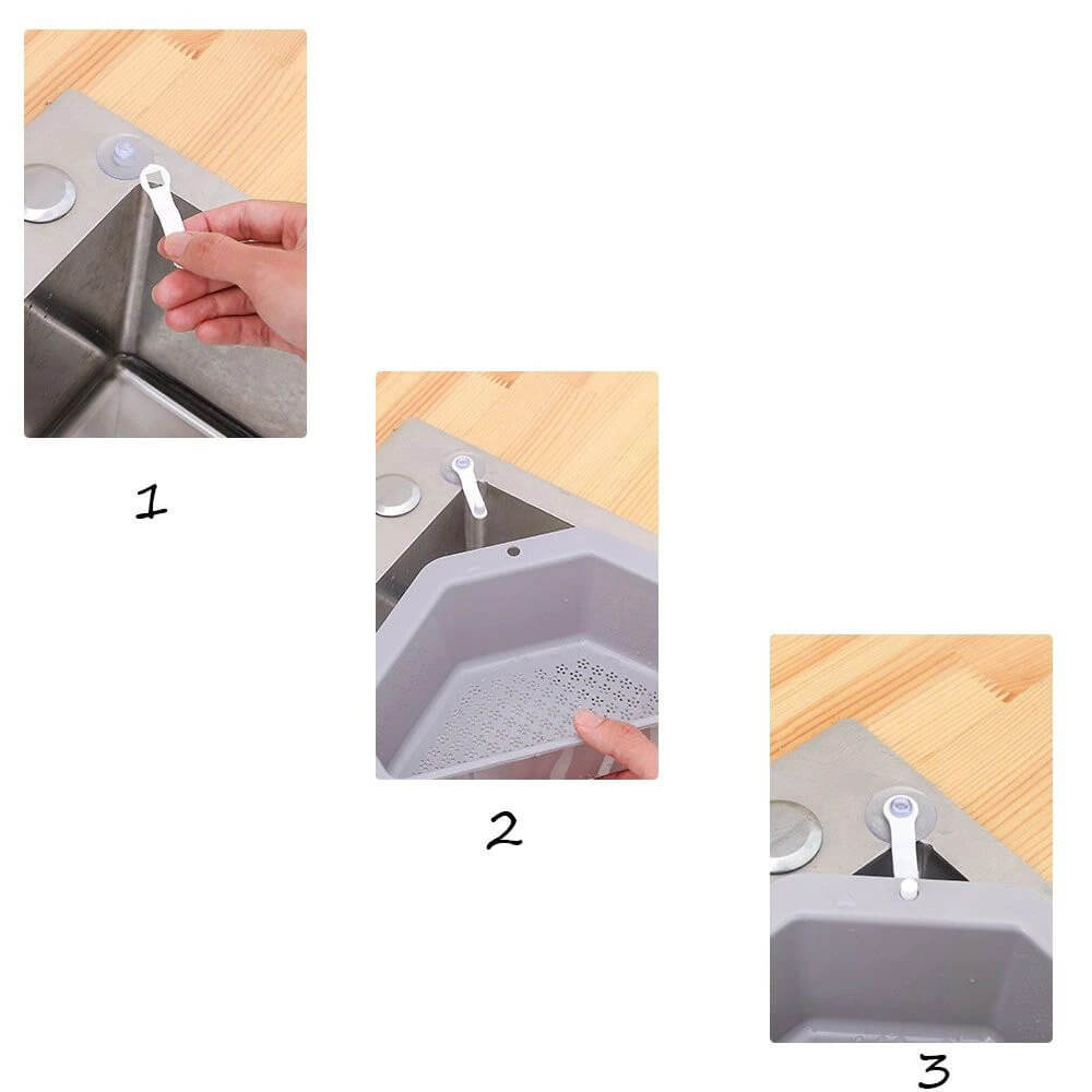 Funkcionalus virtuvės kriauklės kampinis organizatorius. Tai padeda išlaikyti virtuvę tvarkingą. Puikiai tinka kaip kempinių, šepečių ir plieninės vatos talpykla. Perforuotas dugnas leidžia nuolat išleisti vandenį. Lengvai montuojamas ant kriauklės krašto, nes pritvirtintas siurbtukas ir šoninės rankenos.