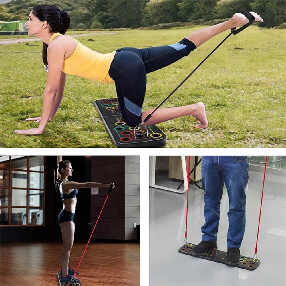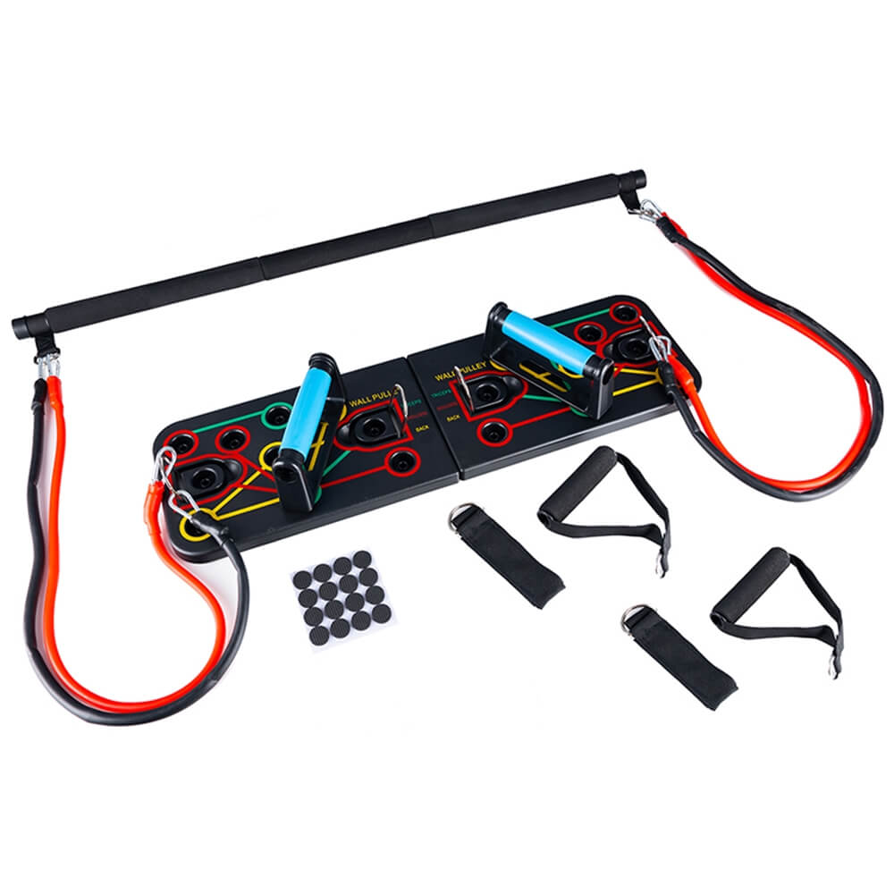Pasiekite savo sportinius tikslus be sporto salės – su šiuo daugiafunkciu treniruoklių rinkiniu galite treniruoti visą kūną bet kur ir bet kada. Idealus pasirinkimas norintiems stiprinti raumenis, lavinti ištvermę ir tobulinti kūno formas.