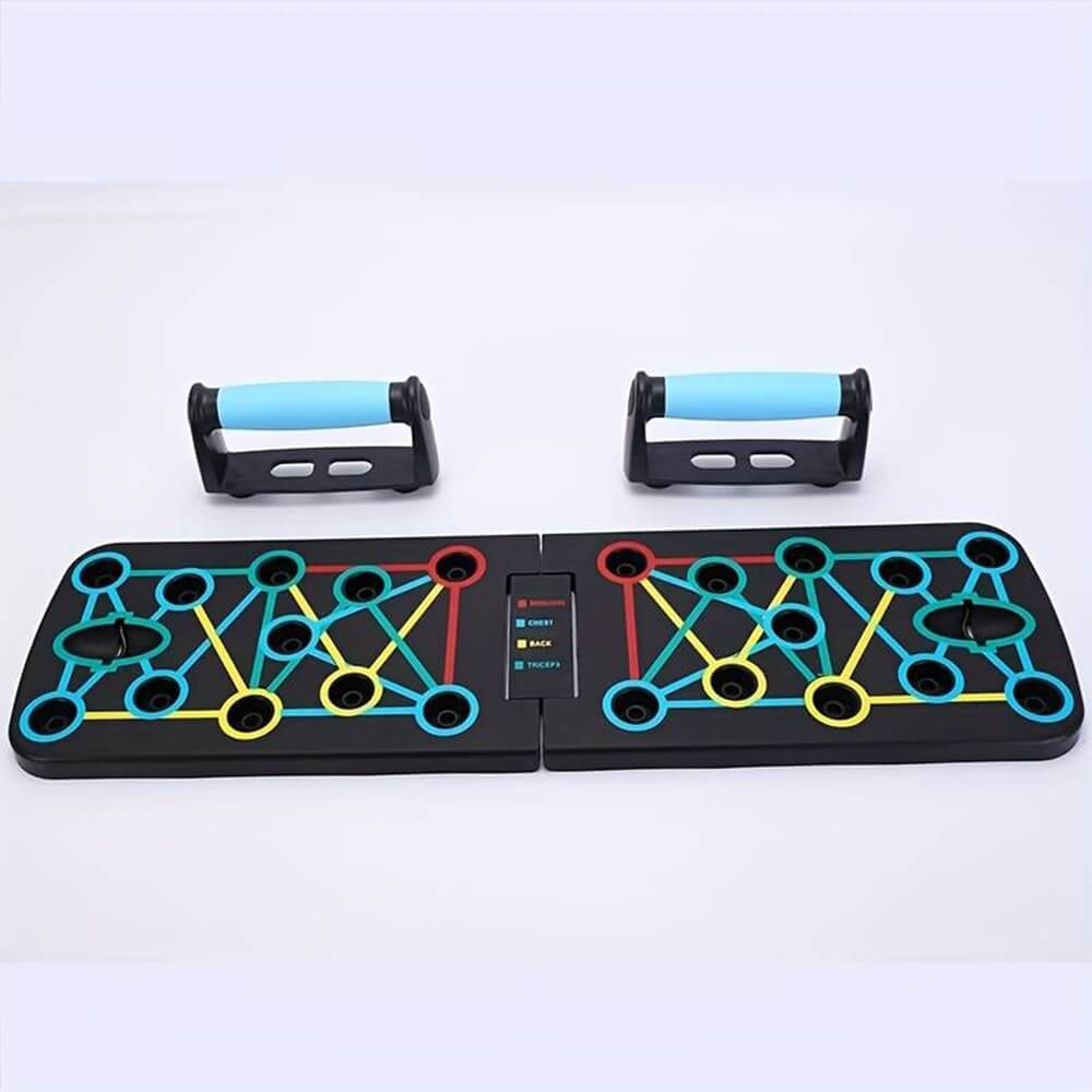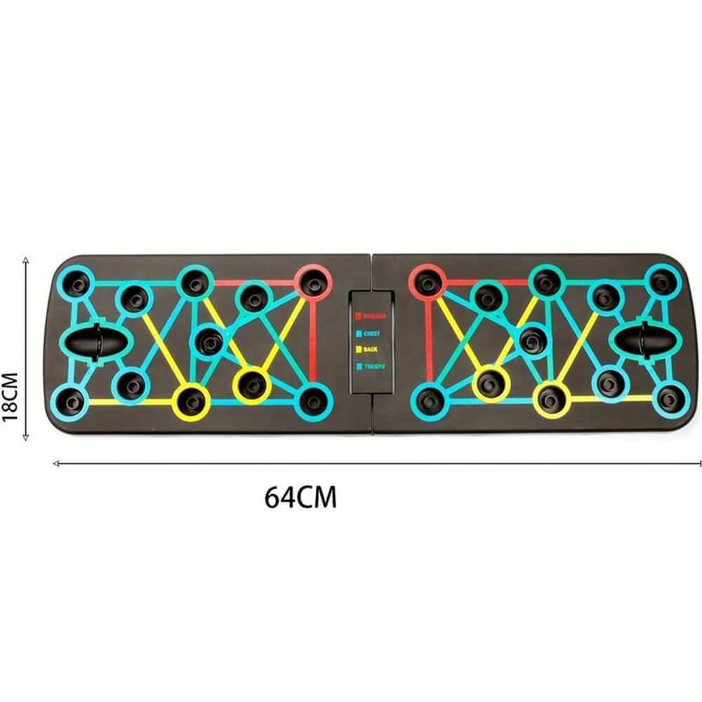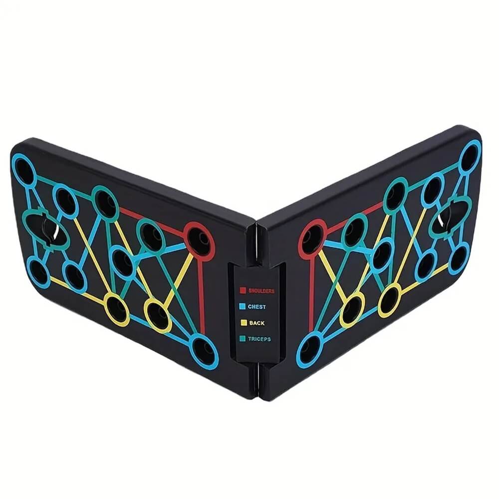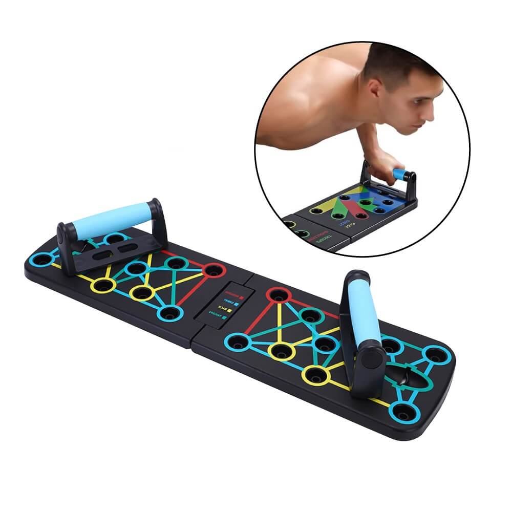 Daugiafunkcinė atsispaudimų lenta padės sustiprinti rankų ir liemens raumenis. Didindami viršutinės kūno dalies pratimų intensyvumą, greitai suformuosite stiprius bicepsus ir tricepsus. Rankenos suteikia stabilią atramą ir tolygiai paskirsto svorį sportuojant pasirinktoje kūno padėtyje.