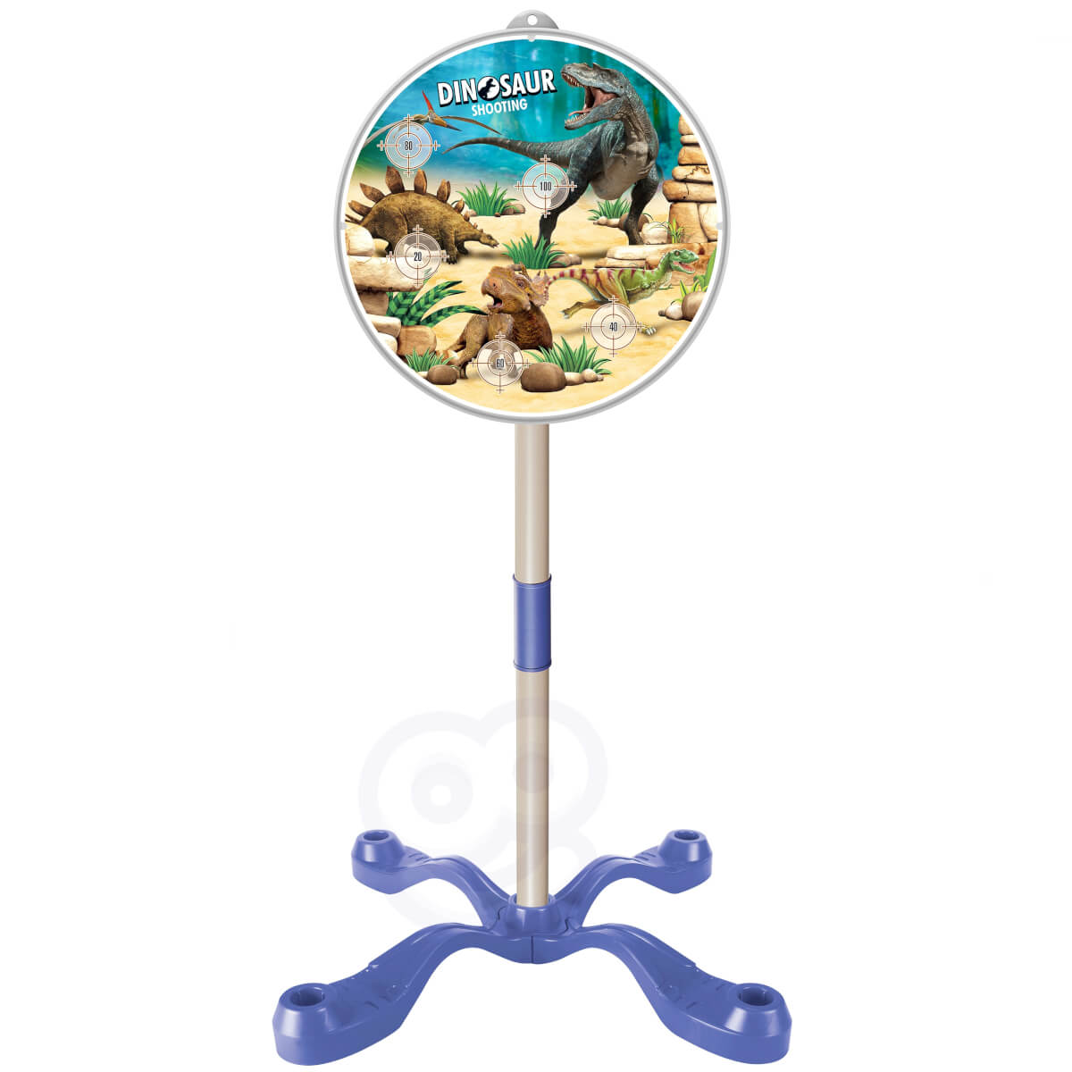 - Stabilus taikinys: skydas su dinozaurų motyvu ir skirtingais taikiniais stovi ant tvirto pagrindo.