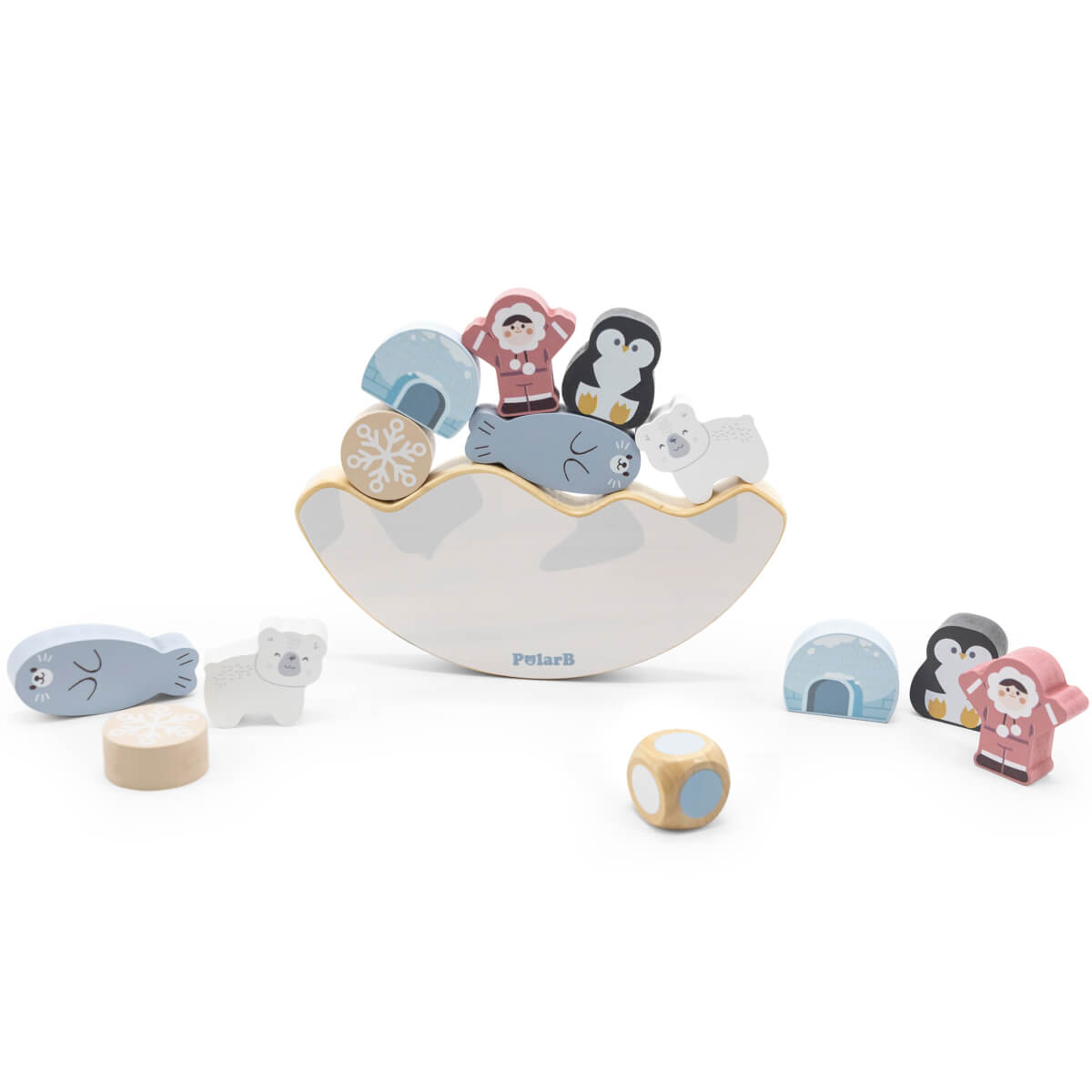 Smagus ir lavinantis balansavimo žaidimas su arkties gyvūnėlių formos kaladėlėmis. Vaikai meta spalvotą kauliuką, pasirenka atitinkamos spalvos kaladėlę ir dėlioja ją ant svyruojančio pagrindo, stengdamiesi išlaikyti pusiausvyrą. Tai žadina kūrybiškumą, lavina smulkiąją motoriką ir loginį mąstymą. Mediniai elementai yra glotnūs, be aštrių briaunų, puikiai tinka mažoms rankytėms. Rinkinys 100% saugus vaikams ir aplinkai.