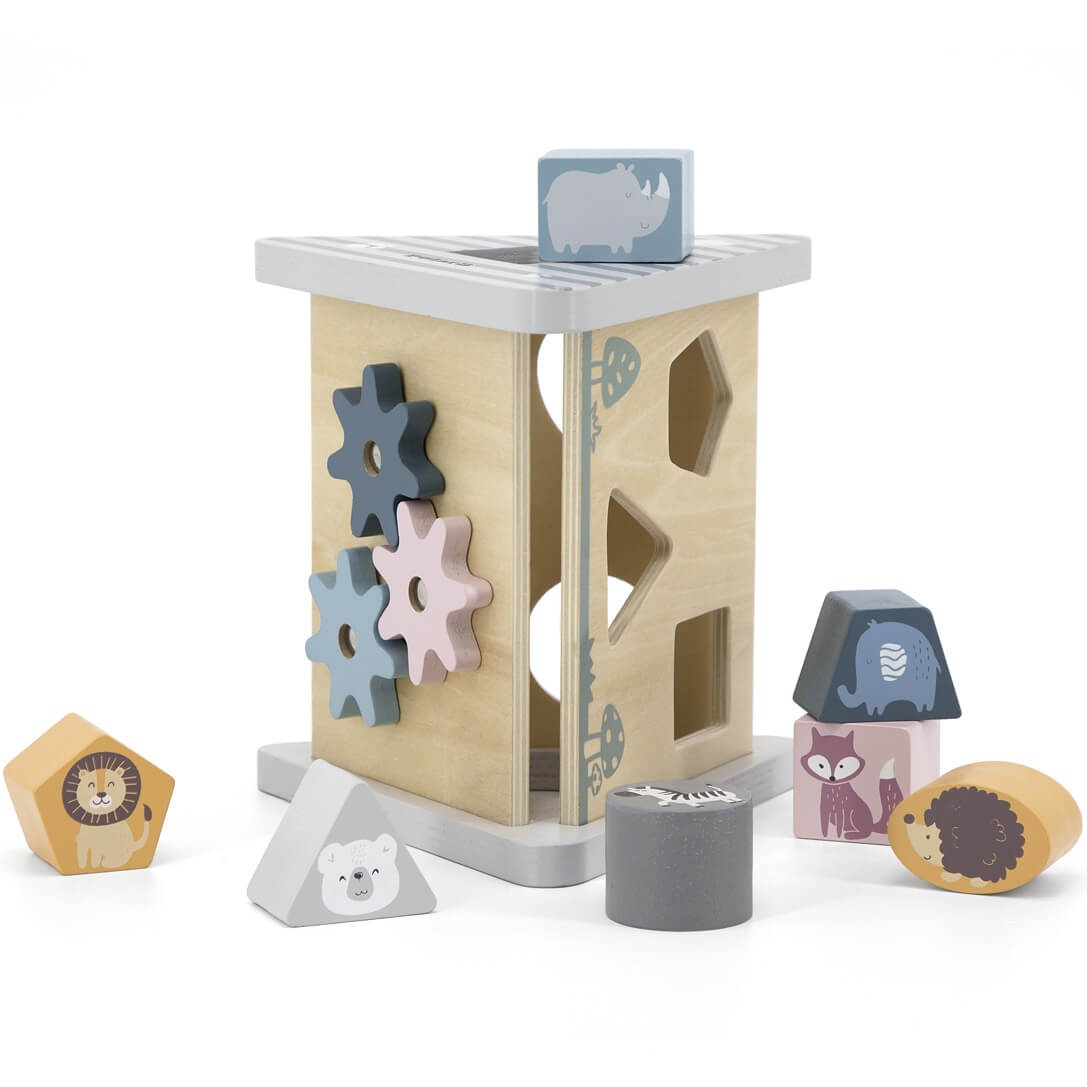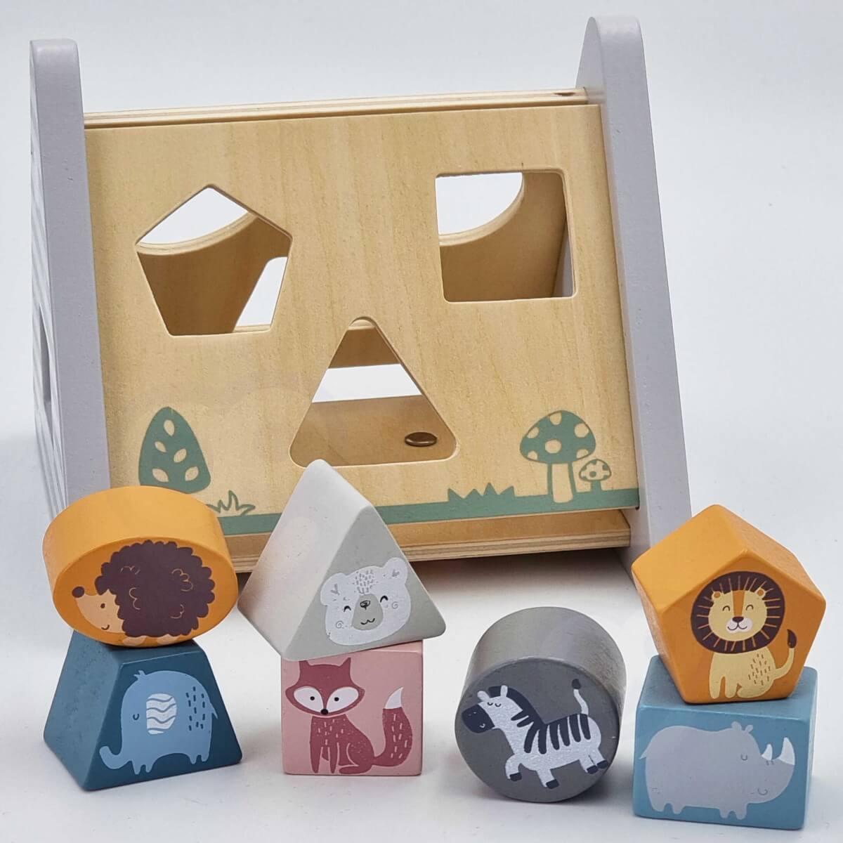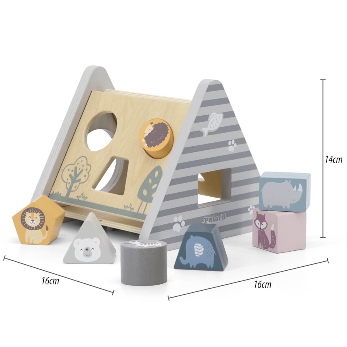 Viga Polar Bear medinis formų rūšiuotojas – švelnių pastelinių spalvų lavinamasis žaislas su gyvūnų figūrėlėmis