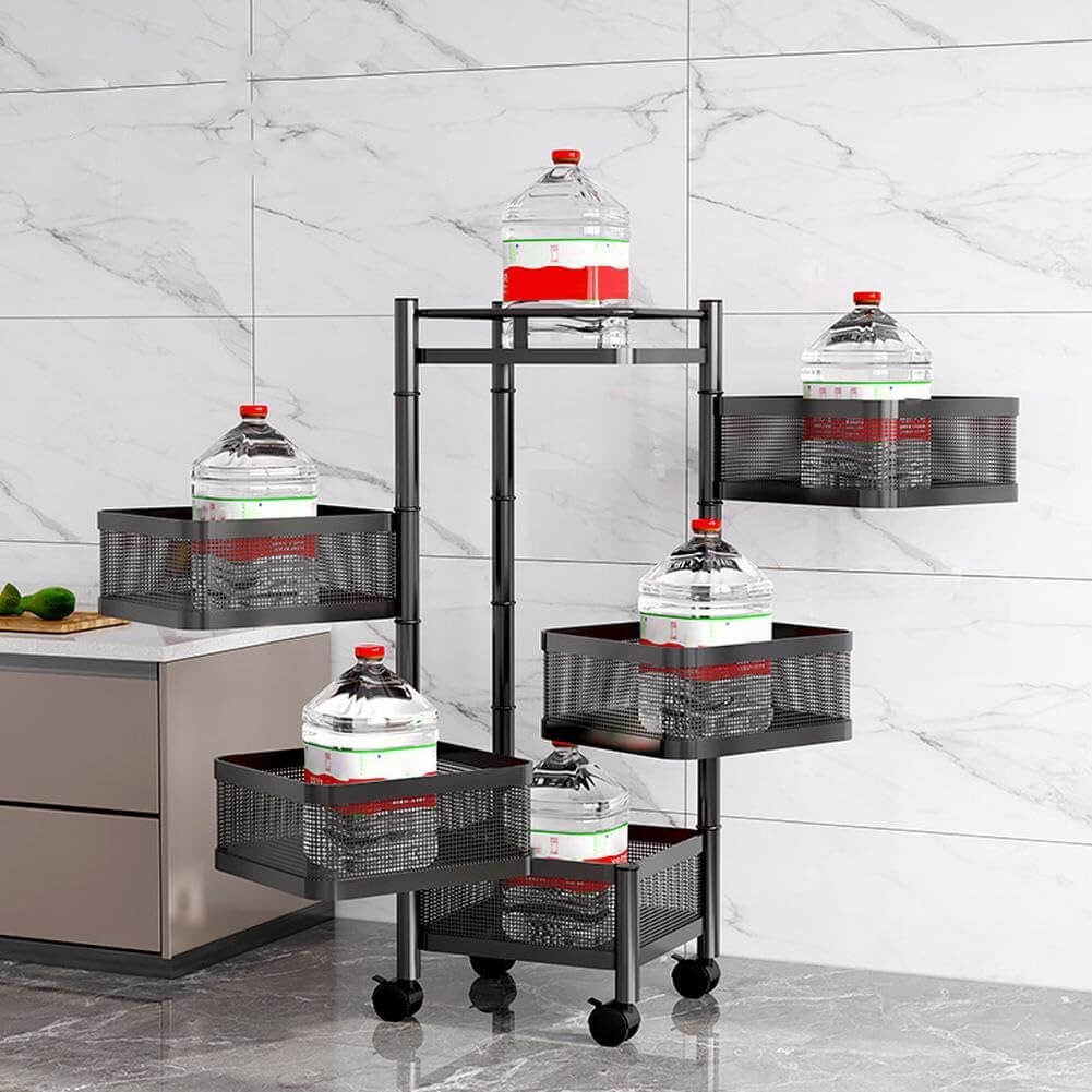 5 aukštų metalinis sukamas laikymo stovas su ratukais – juodas