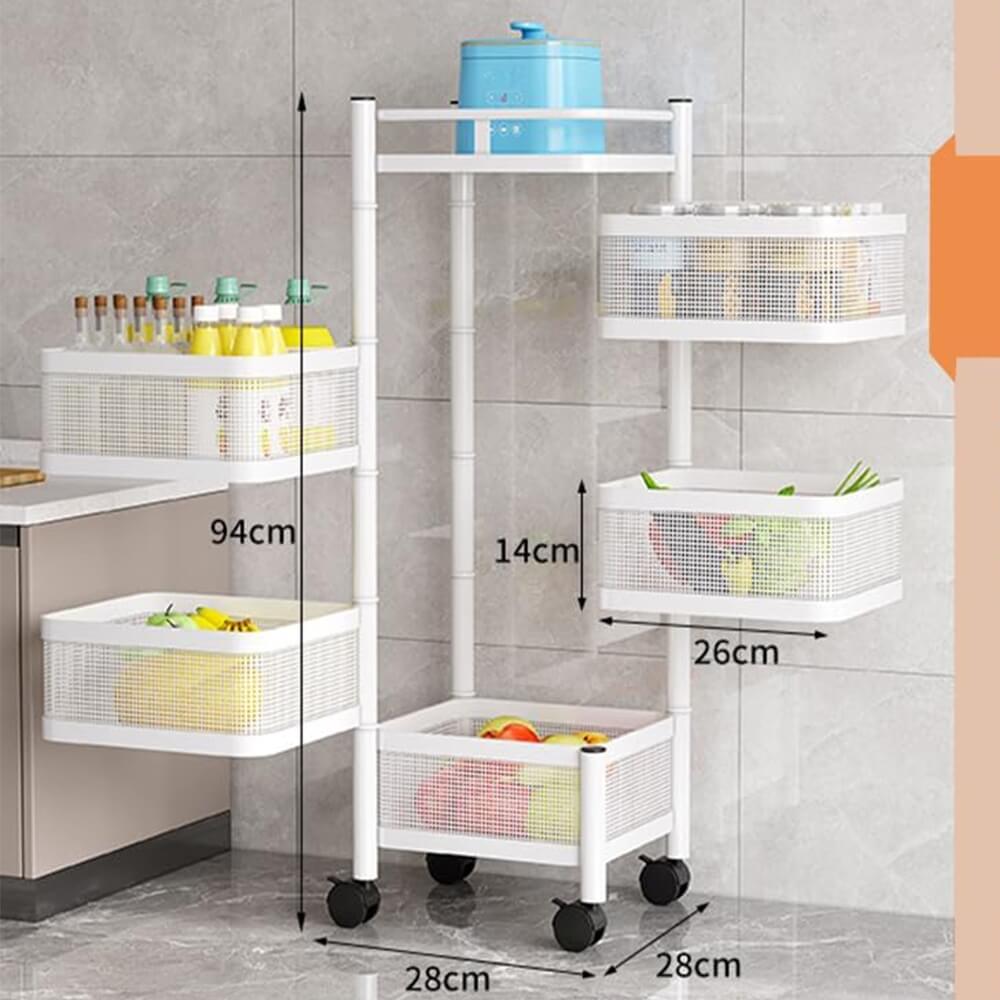 Ieškote praktiško ir modernaus sprendimo virtuvės, vonios ar sandėliuko organizavimui? Šis 5 aukštų metalinis laikymo stovas su sukamu dizainu ir ratukais yra puikus pasirinkimas!