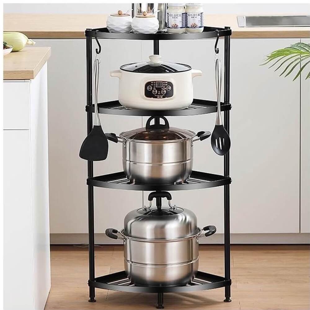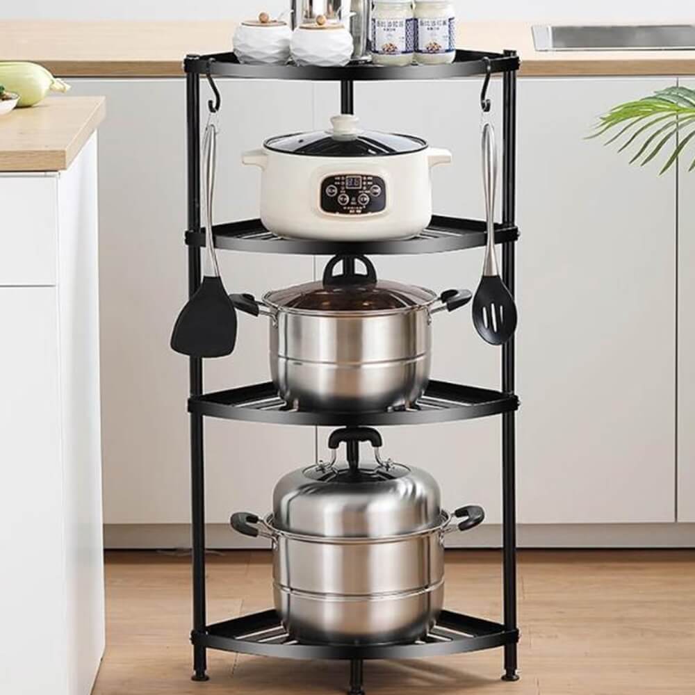 Praktiška ir universali kampinė lentyna – puikus sprendimas tvarkai namuose palaikyti. Dėl kompaktiško dizaino ji lengvai telpa į virtuvės, vonios ar svetainės kampą, neužimdama daug vietos, tačiau suteikdama daug papildomos vietos daiktų laikymui.