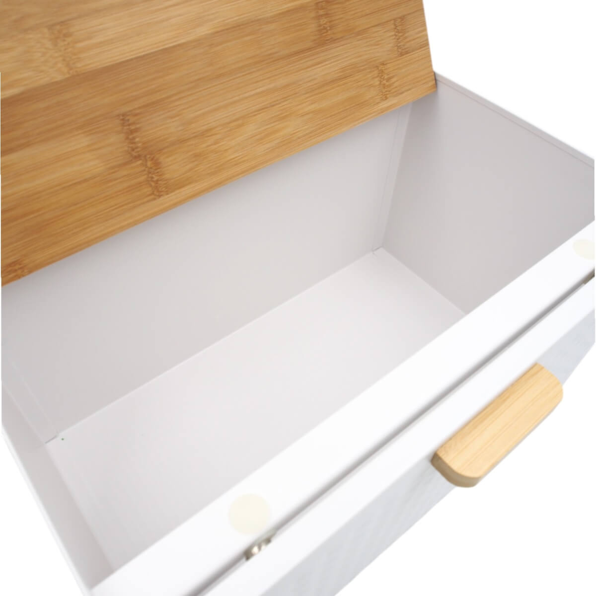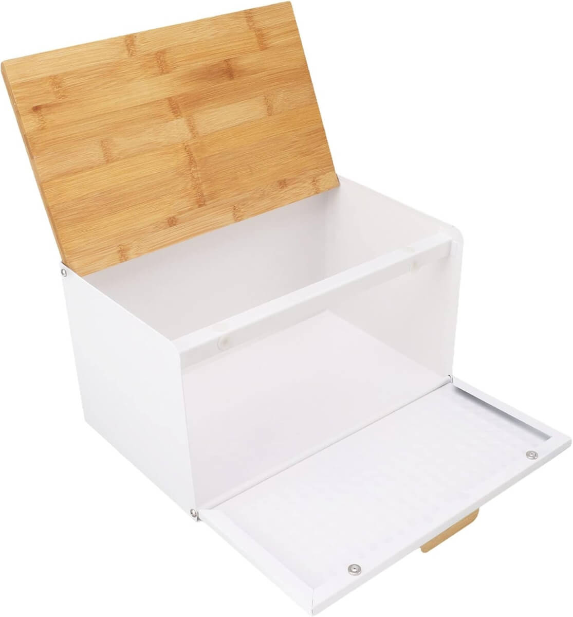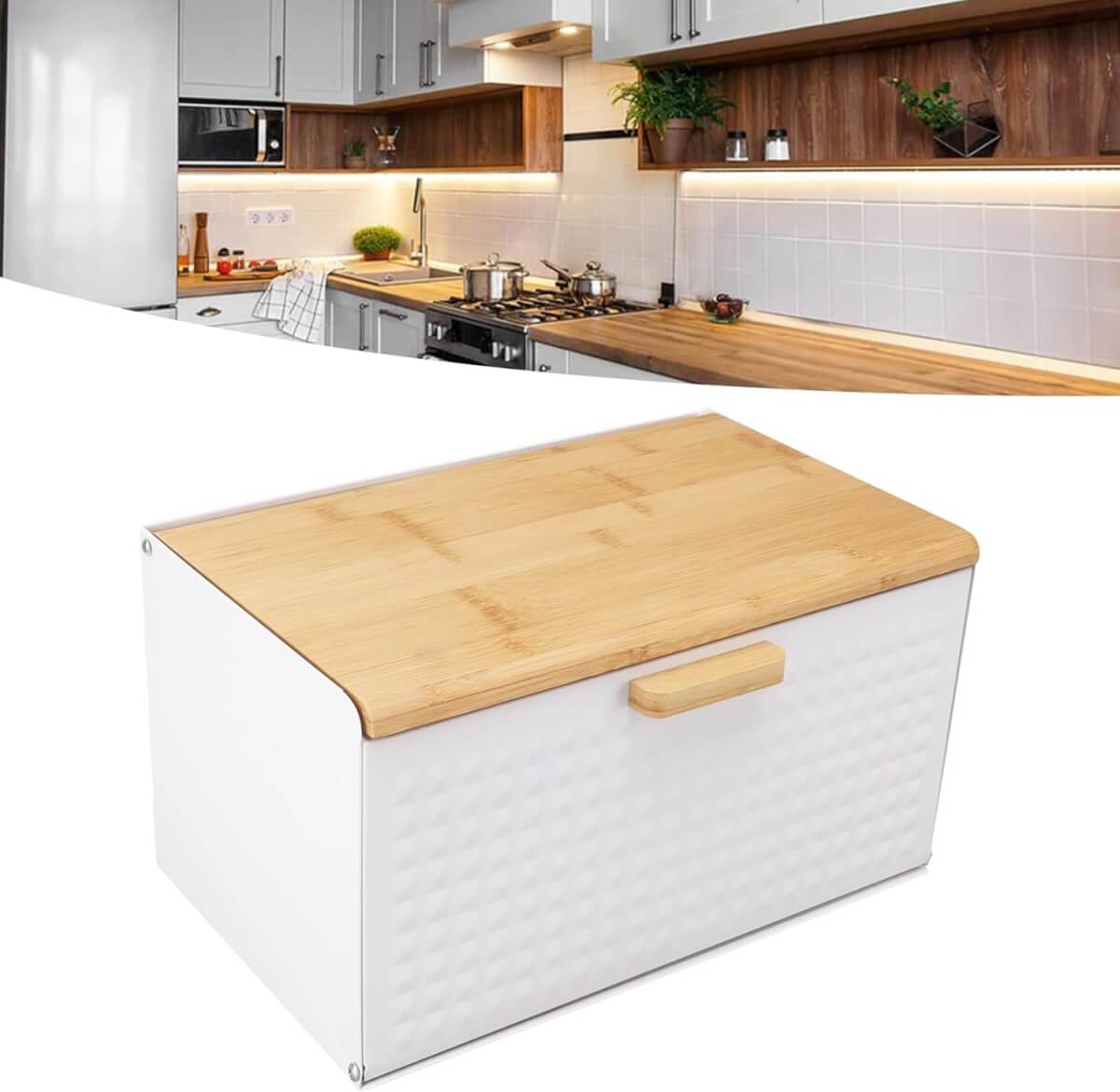 Stilinga ir praktiška duoninė padės išlaikyti kepinius šviežius ilgiau ir tvarkingai laikyti juos virtuvėje. Pagaminta iš tvirto metalo su natūralaus bambuko dangčiu, kuris ne tik suteikia modernų akcentą, bet ir gali būti naudojamas kaip pjaustymo lentelė.
