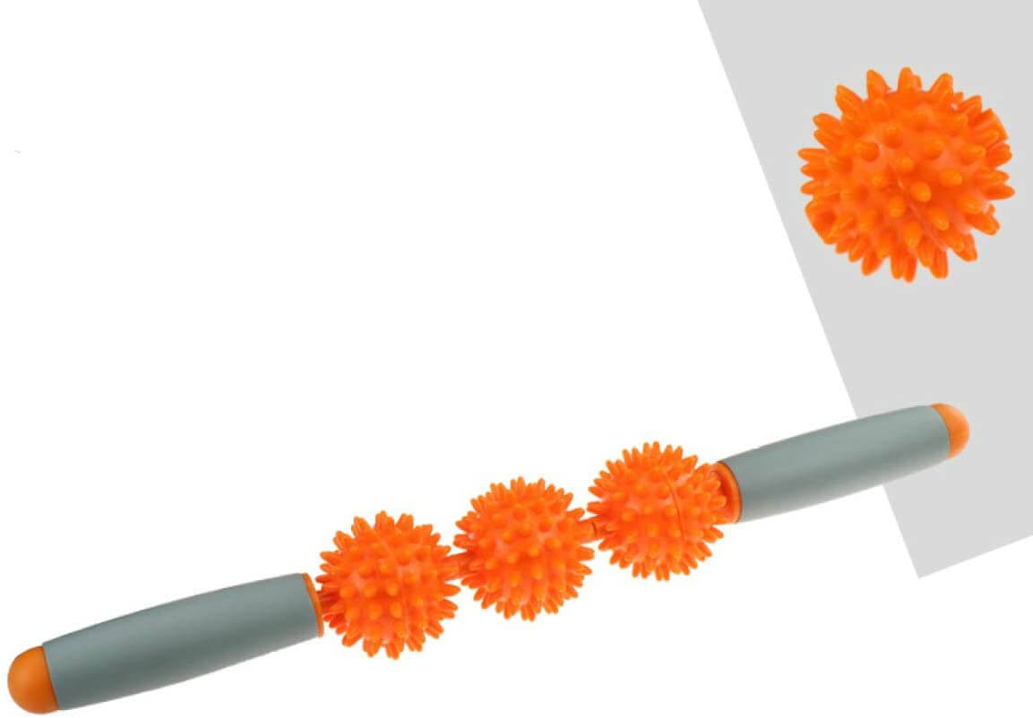 Masažinė lazda M3 41 cm su 3 masažiniais ritinėliais tinka masažui (pečių, juosmens, rankų, kojų ir kt.) tiek prieš treniruotes, tiek po jų. Masažinė lazda skirta mažinti raumenų įtampą. Reljefiniai ritinukai didina kraujotaką bei atpalaiduoja raumenis. Paminkštintos rankenos suteikia patogumo naudojant.