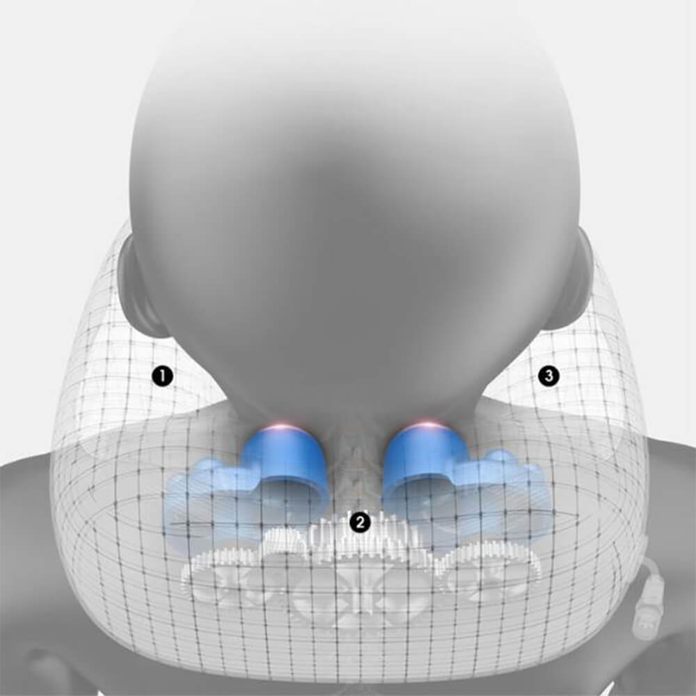 3D masažo technologija – imituoja žmogaus rankų judesius, efektyviai atpalaiduodama raumenis.