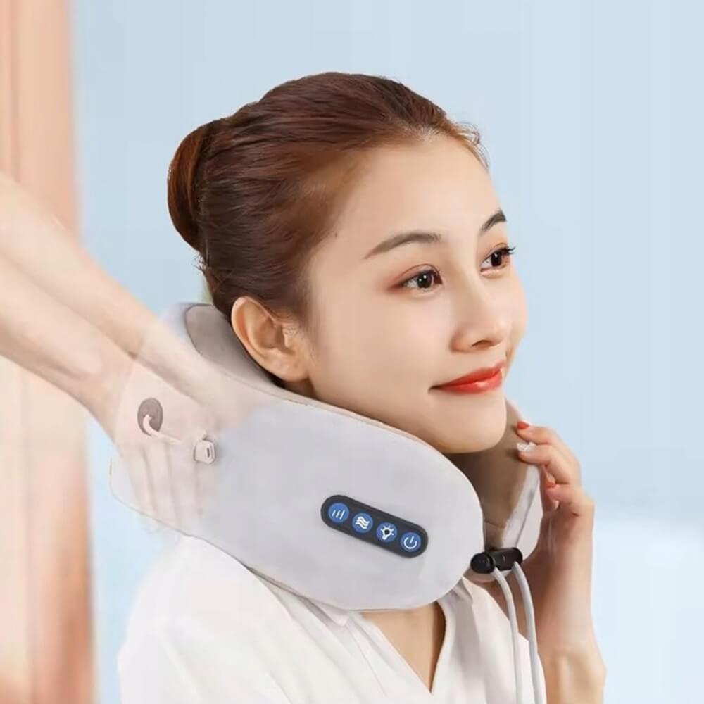 Patirkite maksimalią kelionių ir poilsio komforto patirtį su U formos masažine pagalve. Ji ne tik palaiko kaklą, bet ir masažuoja bei šildo, padėdama sumažinti įtampą, nuovargį ir skausmą. Idealiai tinka naudojimui namuose, biure, automobilyje, lėktuve ar traukinyje.