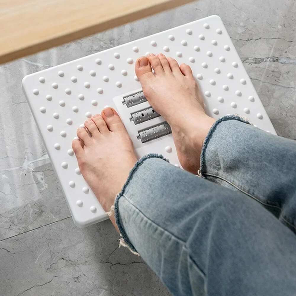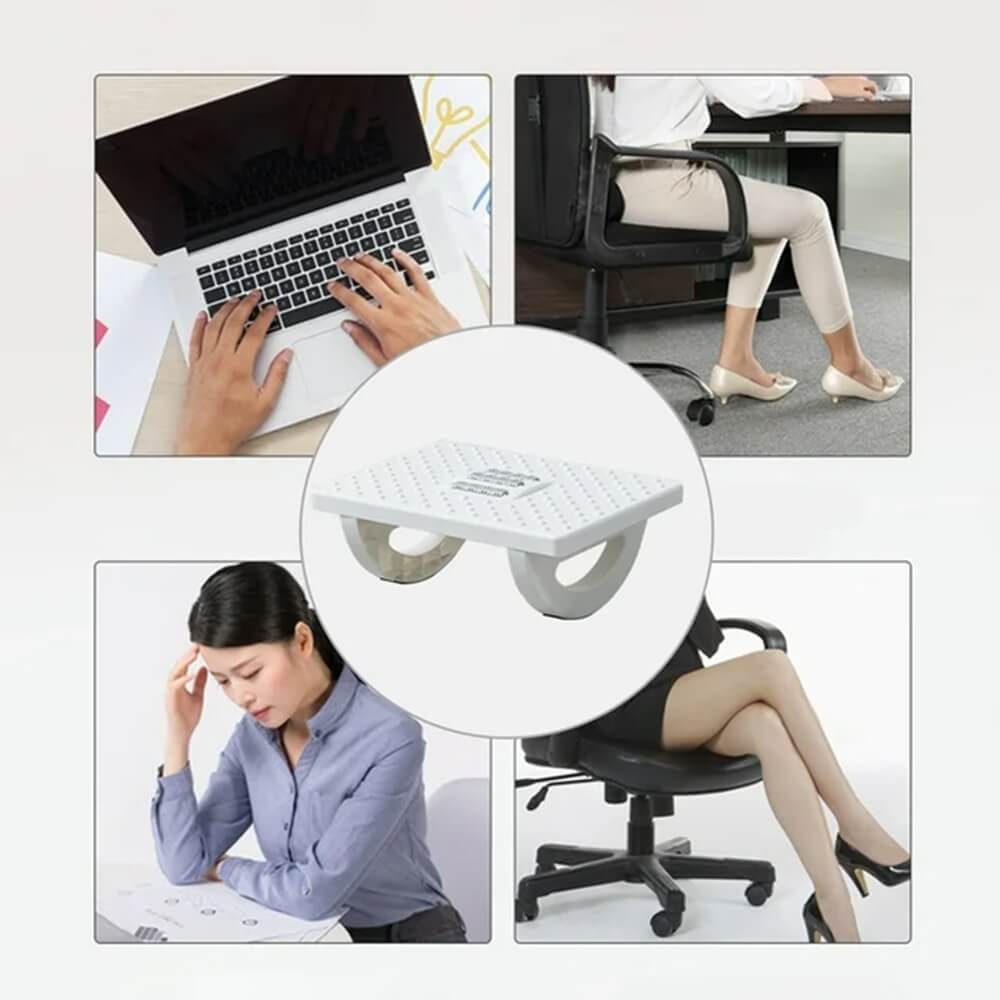 Patogus ir ergonomiškas pėdų masažuoklis–pakojis padės sumažinti įtampą kojose, skatins kraujotaką ir pagerins laikyseną sėdint prie darbo stalo. Supamoji konstrukcija leidžia švelniai judėti pirmyn–atgal, o paviršiaus masažiniai taškai ir voleliai stimuliuoja pėdų aktyviuosius taškus.