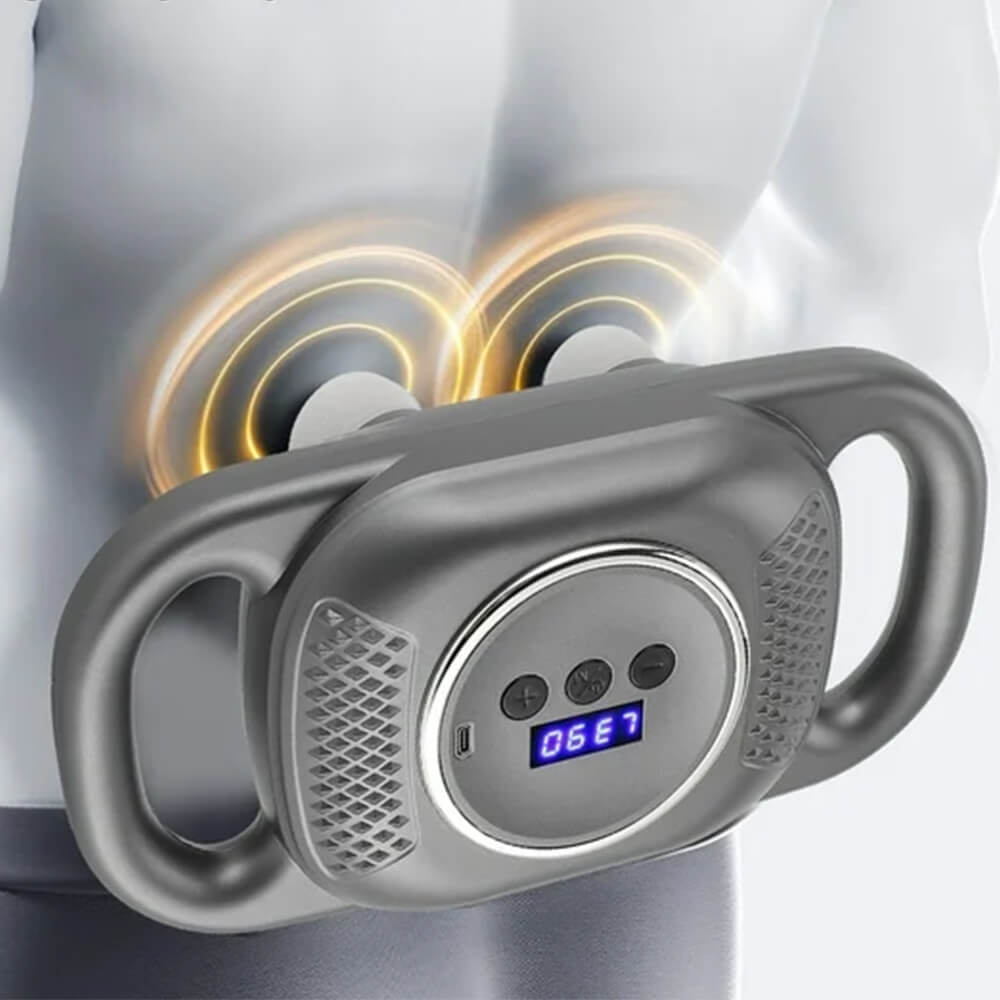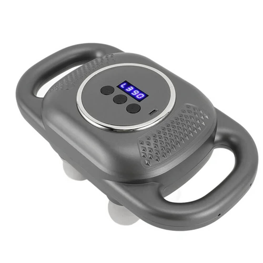 Šis keturių galvučių masažuoklis padės greitai atsipalaiduoti po įtemptos dienos ir palengvins raumenų įtampą. Prietaisas turi ergonomišką dizainą su dviem rankenomis, todėl jį lengva laikyti ir pritaikyti norimoje kūno vietoje – nugaroje, pečiuose, juosmens ar kojų srityje.