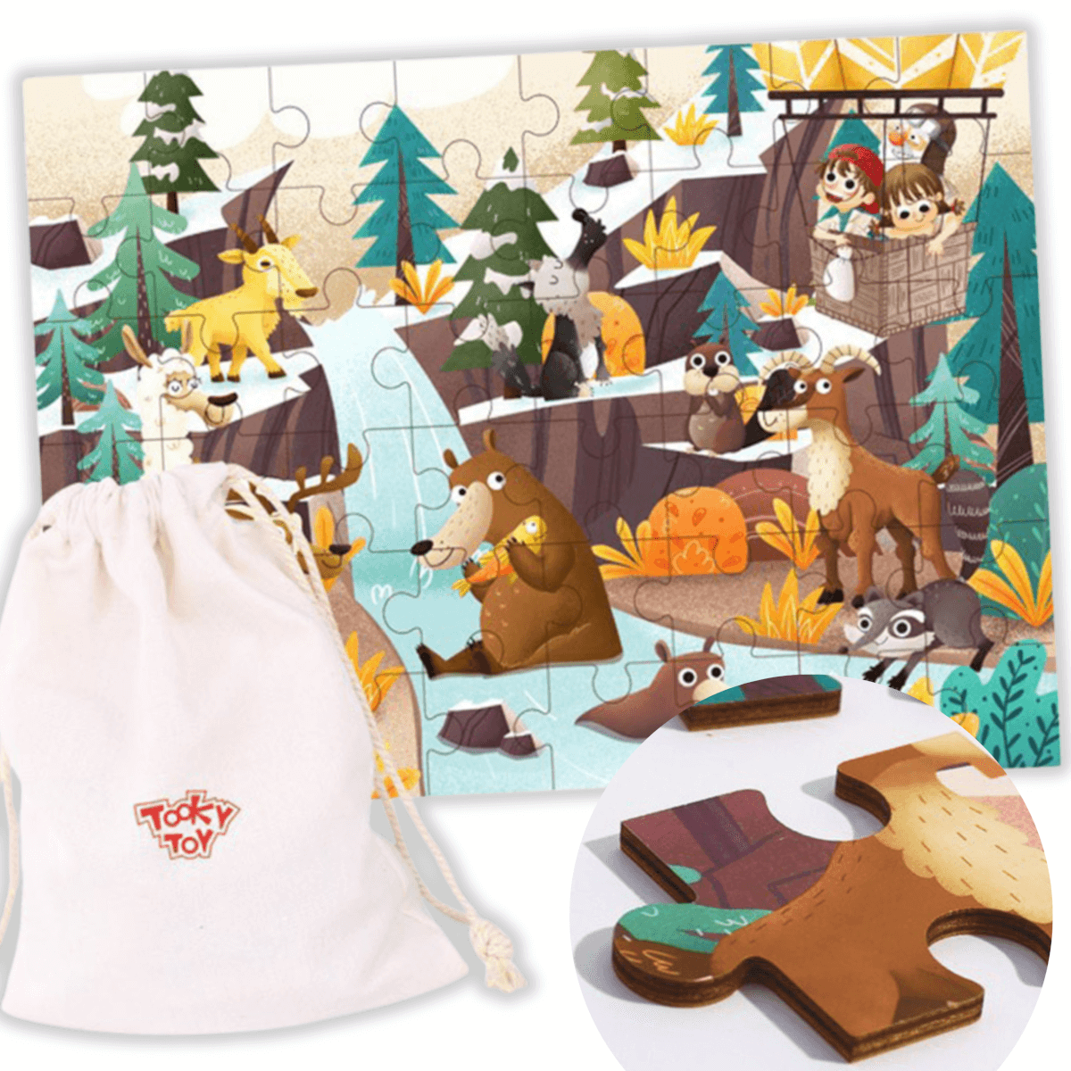 Tooky Toy medinė dėlionė „Alpių gyvūnai ir kraštovaizdis“, 49 detalių