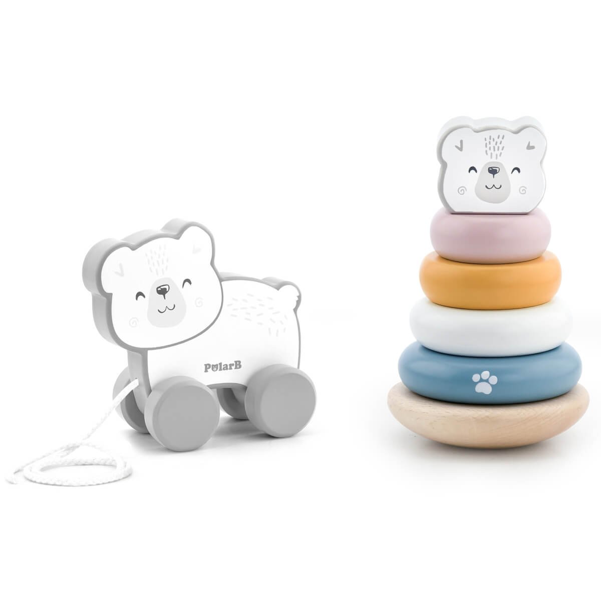 Viga Polar B rinkinys: medinė lavinamoji piramidė ir traukiamas baltasis lokys