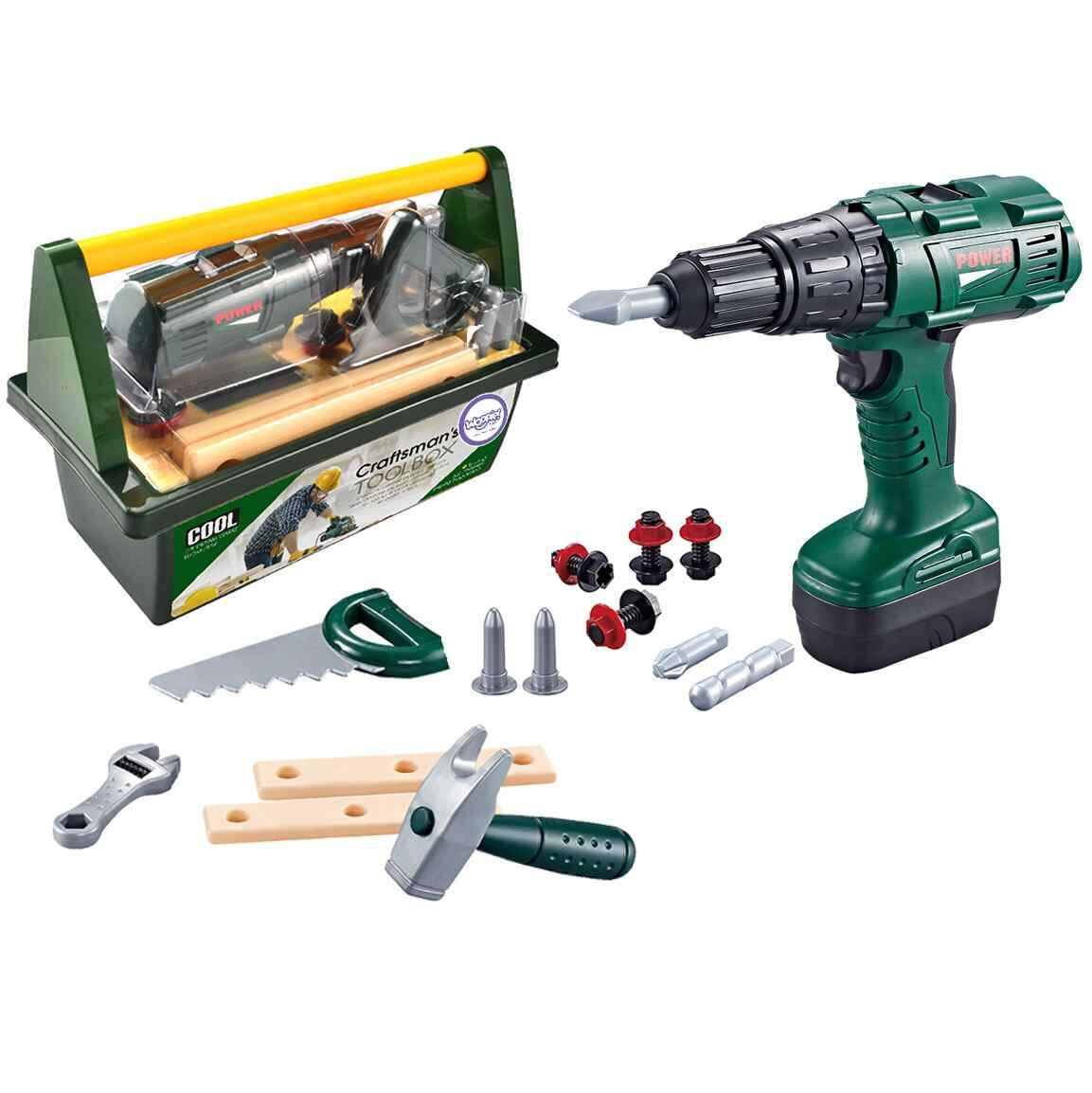 WOOPIE vaikiška įrankių dėžė su baterijomis maitinamu atsuktuvu/gręžtuvu, 15 dalių