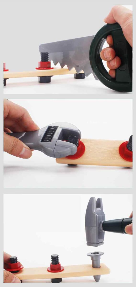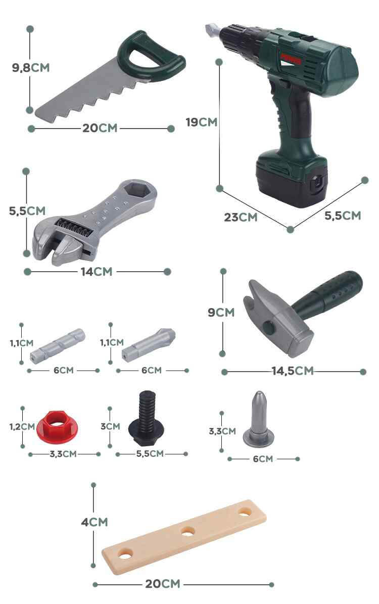 - Realistiška patirtis: atsuktuvas/gręžtuvas skleidžia garso efektus, turi šviesą ir besisukantį antgalį – kaip tikras įrankis.