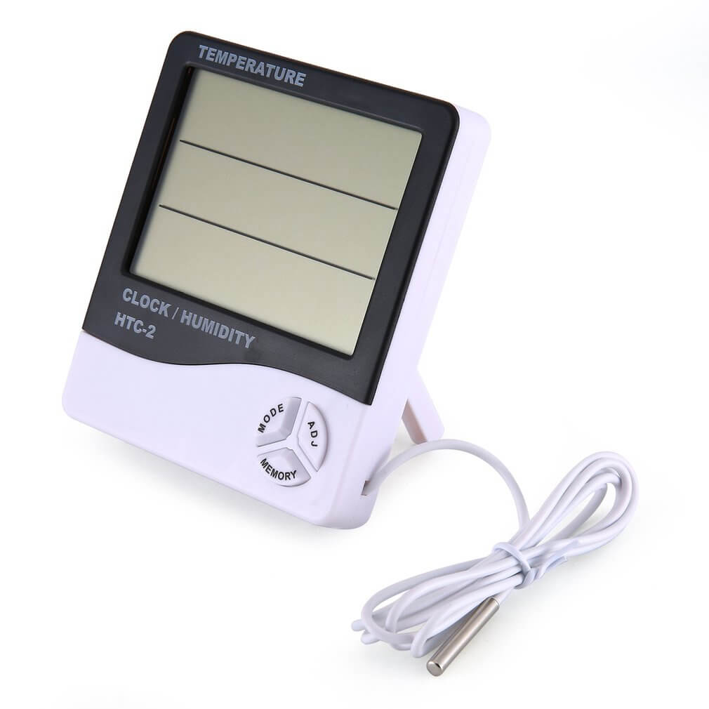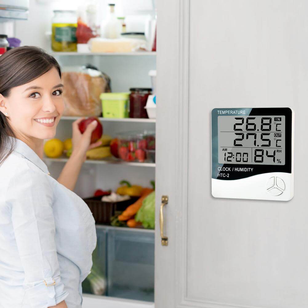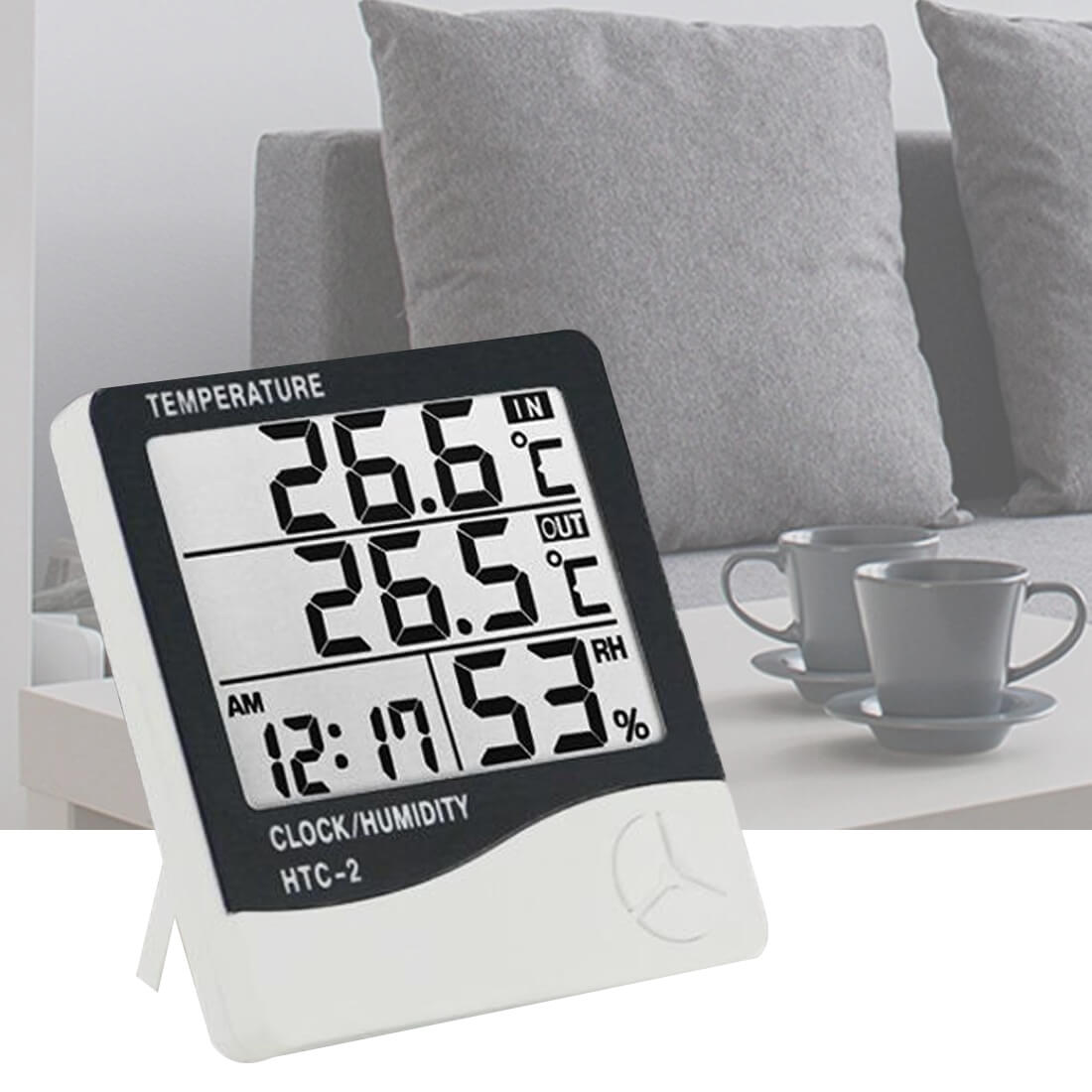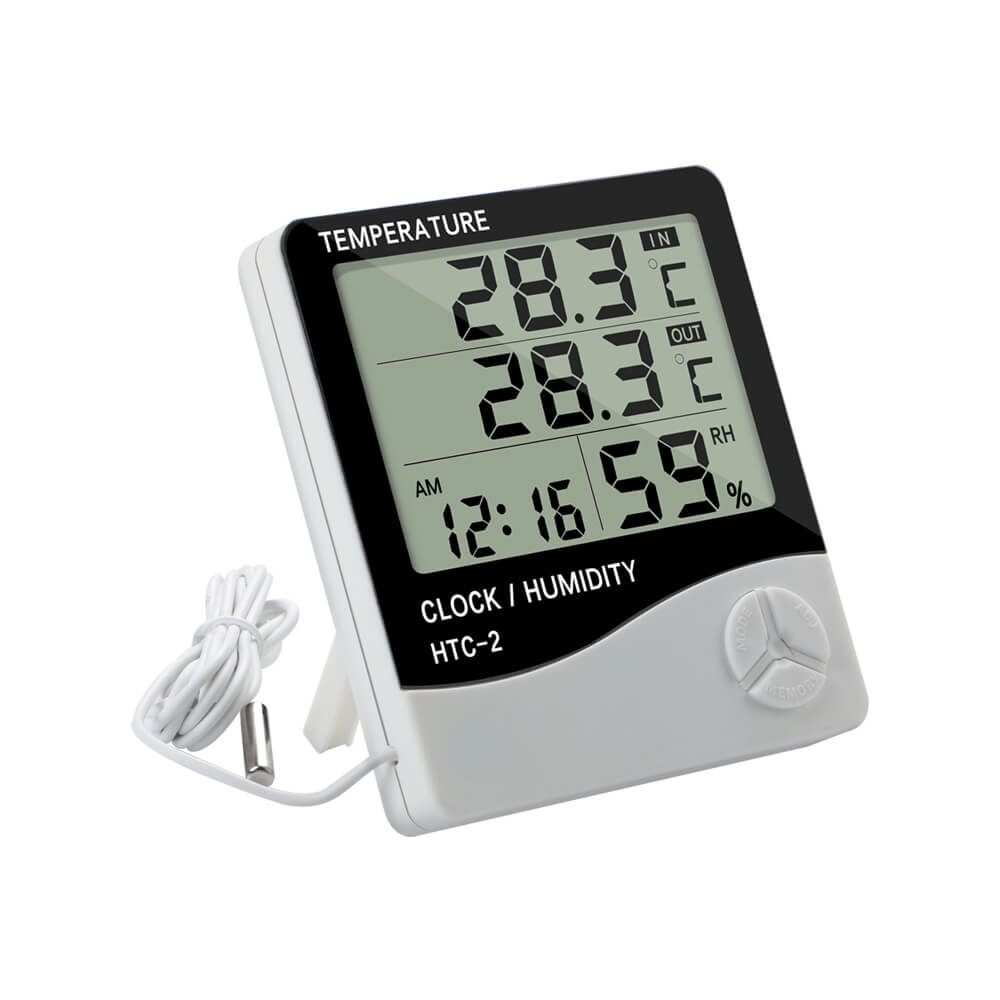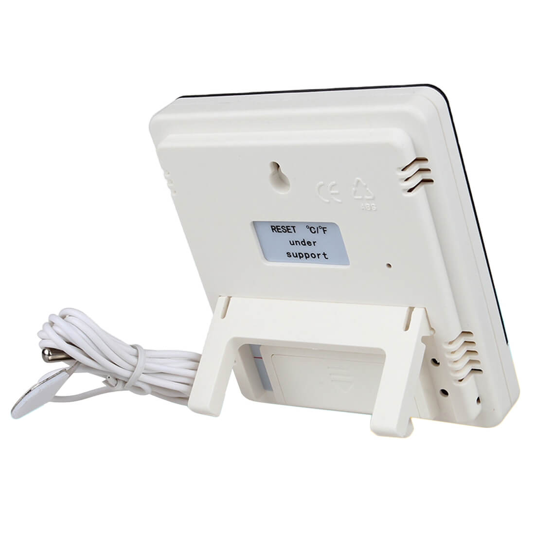 - Pagrindinės įrenginio funkcijos: vidaus temperatūros, lauko temperatūros ir drėgmės matavimas, laikrodis su žadintuvu ir kalendorius!