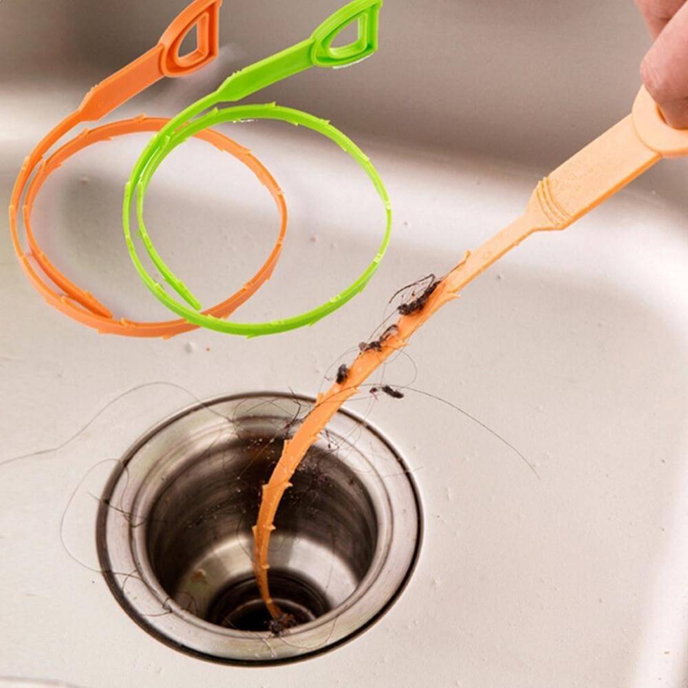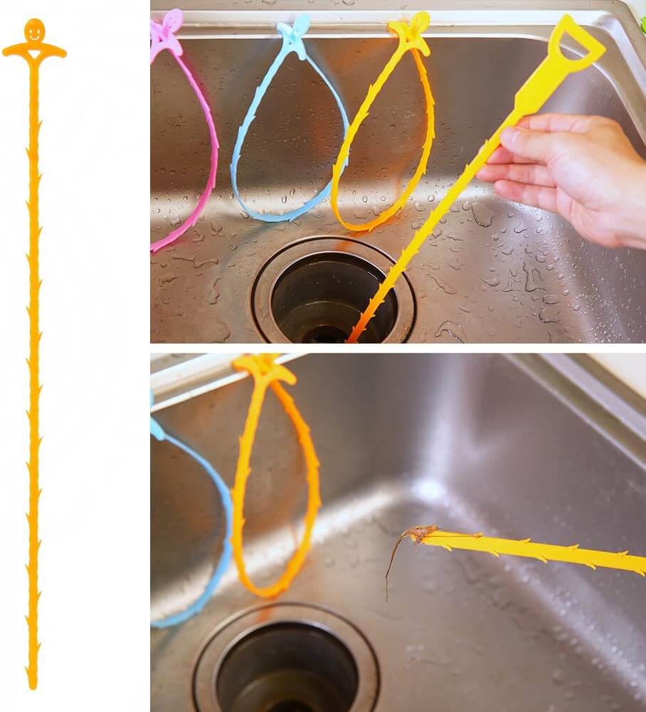 - Su mažais plastikiniais kabliukais pašalinkite šiuksles ir išlaisvinkite kanalizaciją