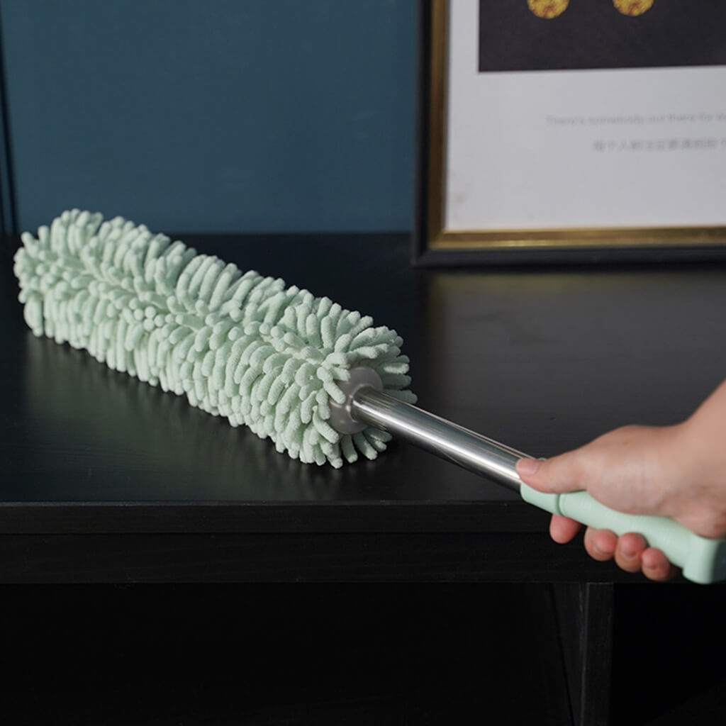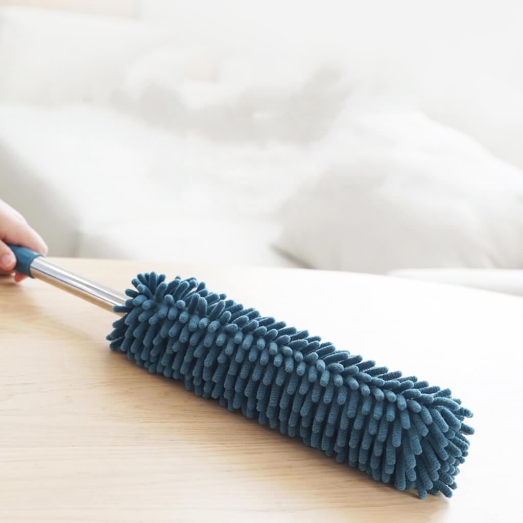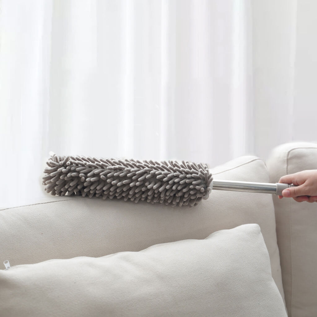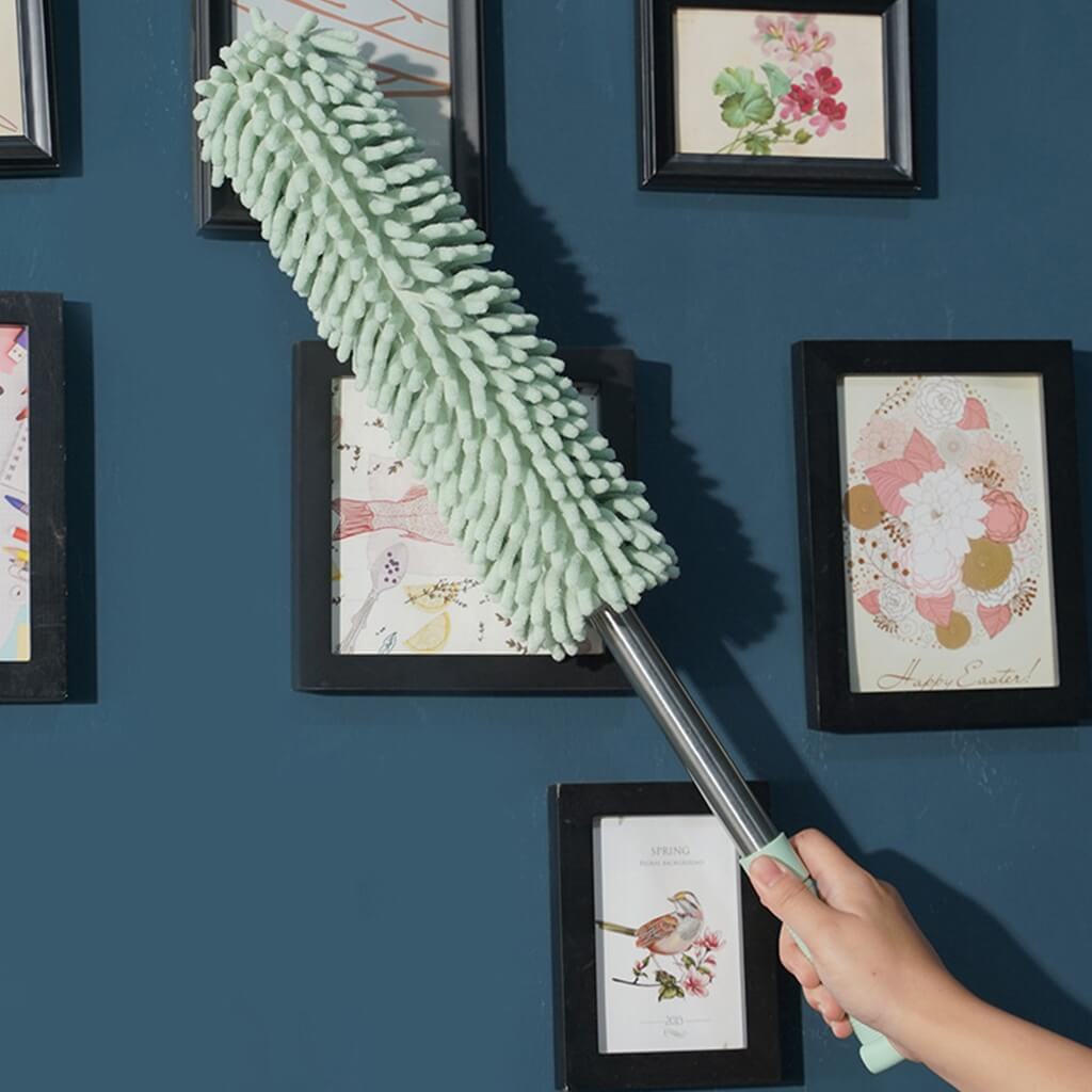 Patogus teleskopinis dulkių šepetys, skirtas valyti sunkiai pasiekiamas vietas: po lubomis, už baldų, ant spintų ar kampuose. Mikropluošto antgalis efektyviai surenka dulkes, o prireikus jį galima nuimti nuo rankenos ir išardyti valymui. Papildomas kabliukas leidžia šepetį patogiai pakabinti laikymui.