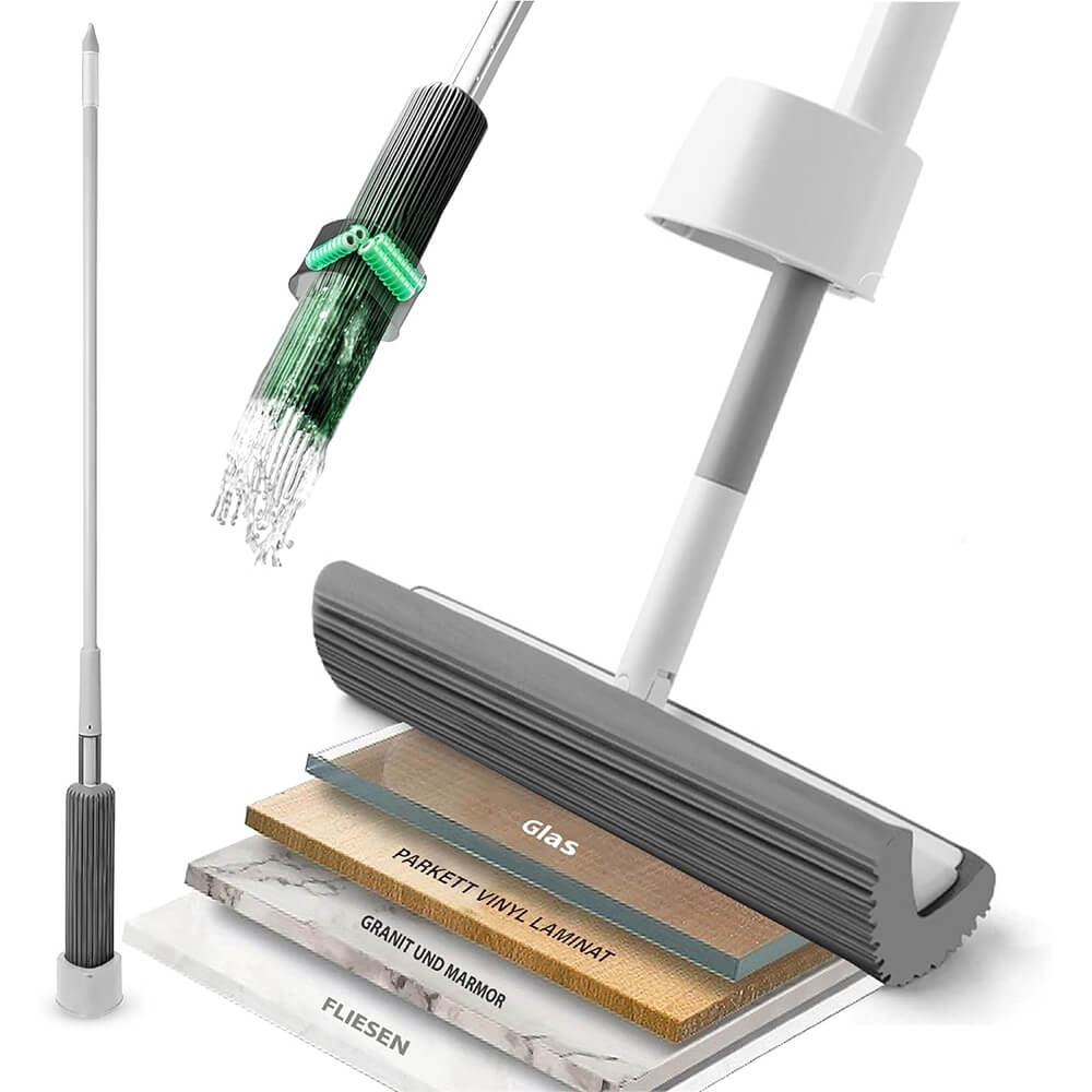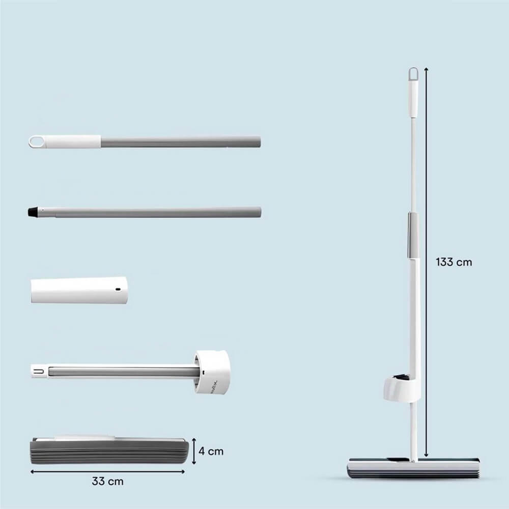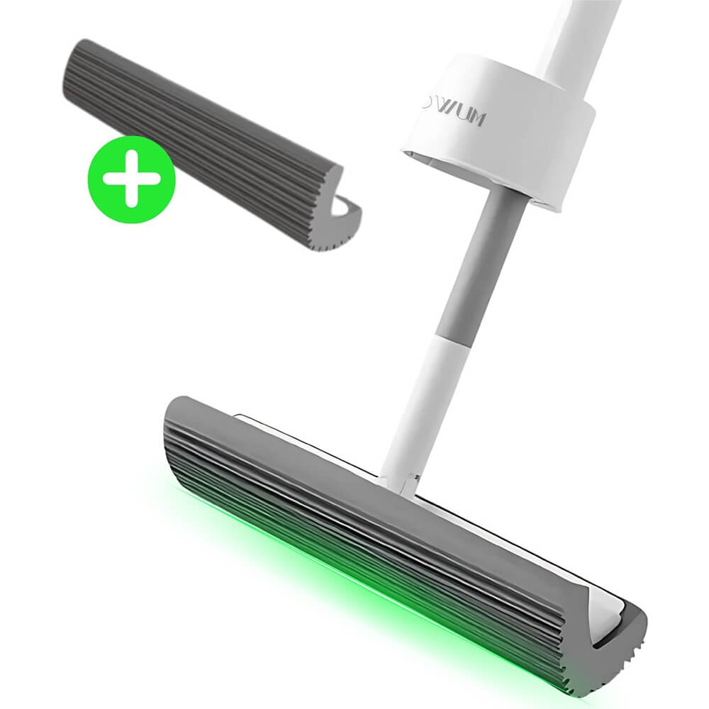 - 33 cm pločio kempinė: PVA kempinė, impregnuota silikoniniu aliejumi – labai minkšta ir 30 % platesnė nei standartinė šluostė. Surenka iki 700 ml skysčio. Pigios pakaitinės kempinės netrukus bus prieinamos parduotuvėje