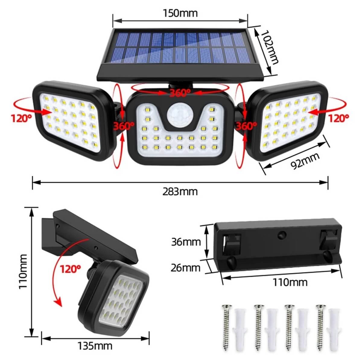 Saulės lempa sukurta taip, kad garantuotų didelį šviesos kiekį naudojant nemokamą atsinaujinančią energiją. 3 LED plokštės užtikrina tinkamą erdvės apšvietimą iki 50m2.